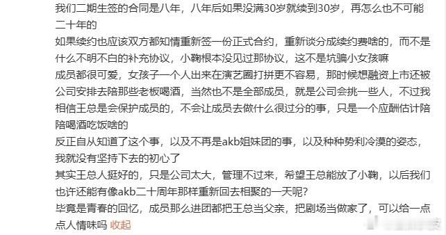 鞠婧祎前队友爆丝芭内幕艺人揭丝芭为上市让成员陪酒 爆料指出,丝芭传媒在推动上市期间,涉嫌利用旗下女艺人作为应酬资源,陪同投资方进行酒局饭局。