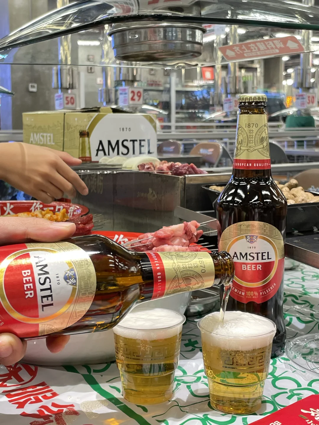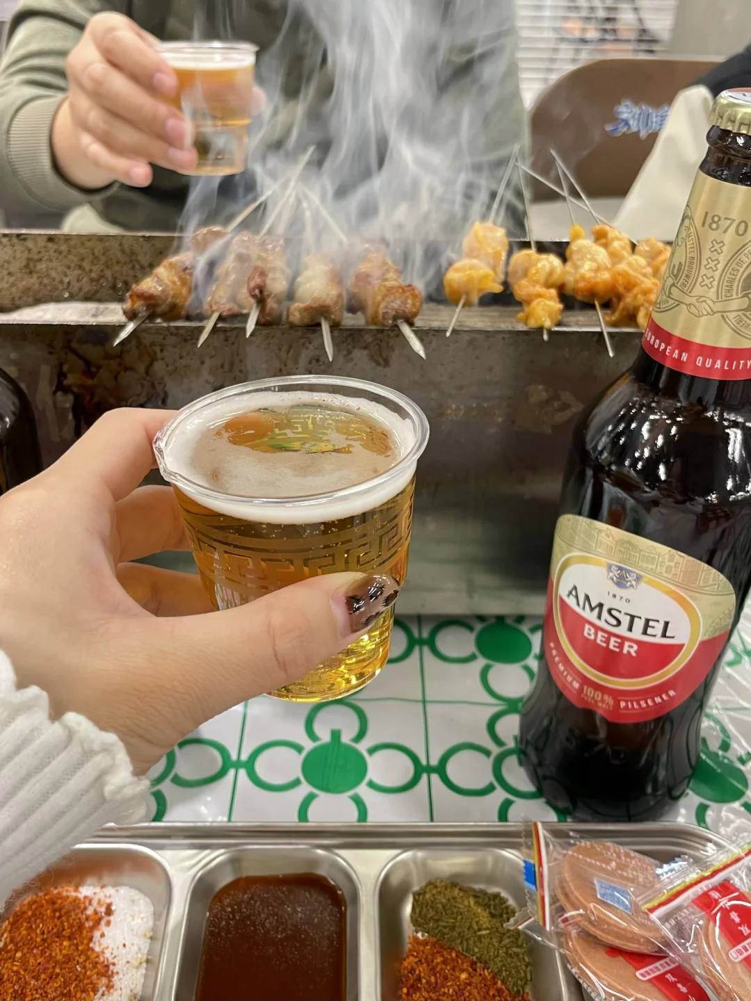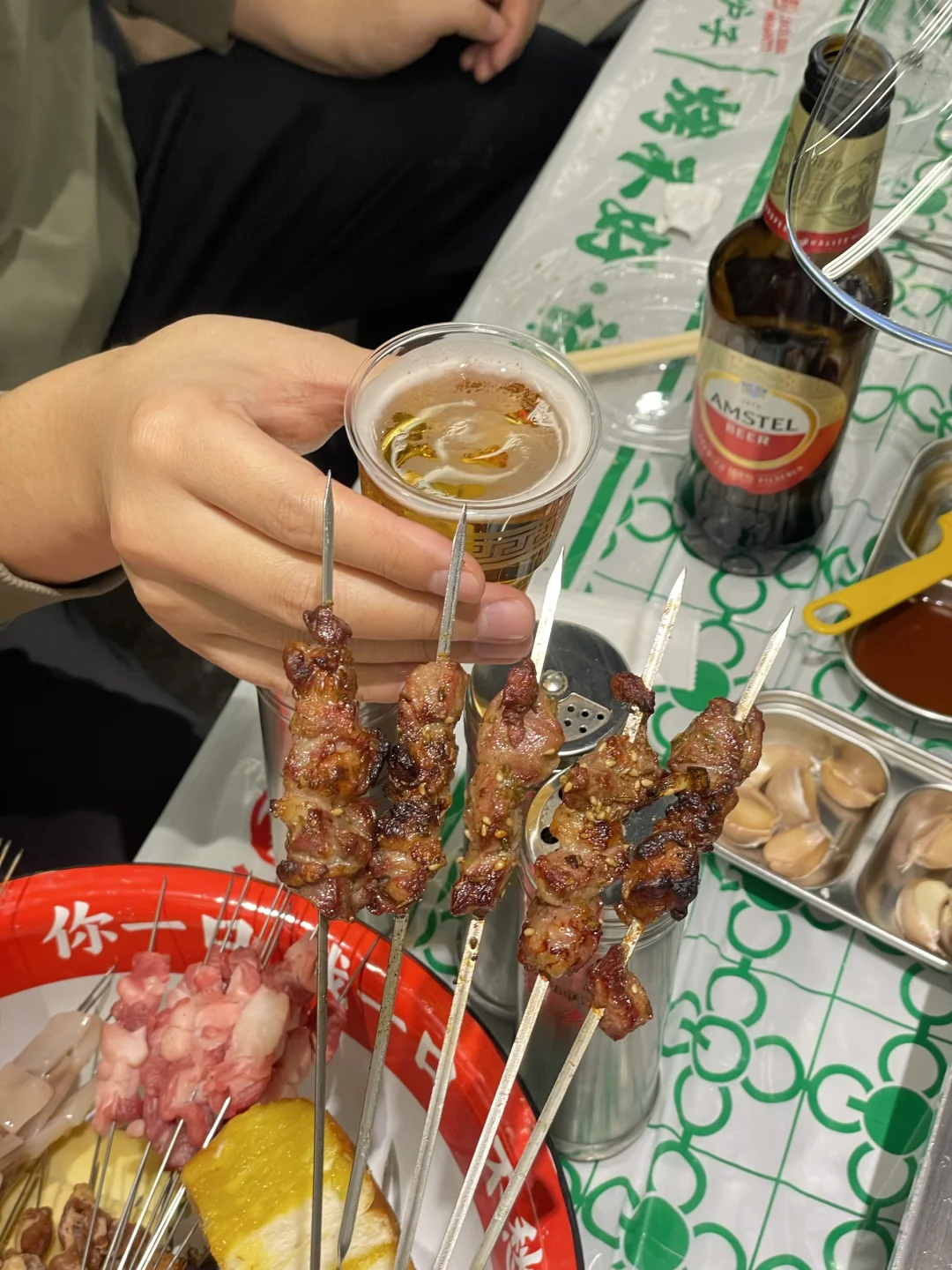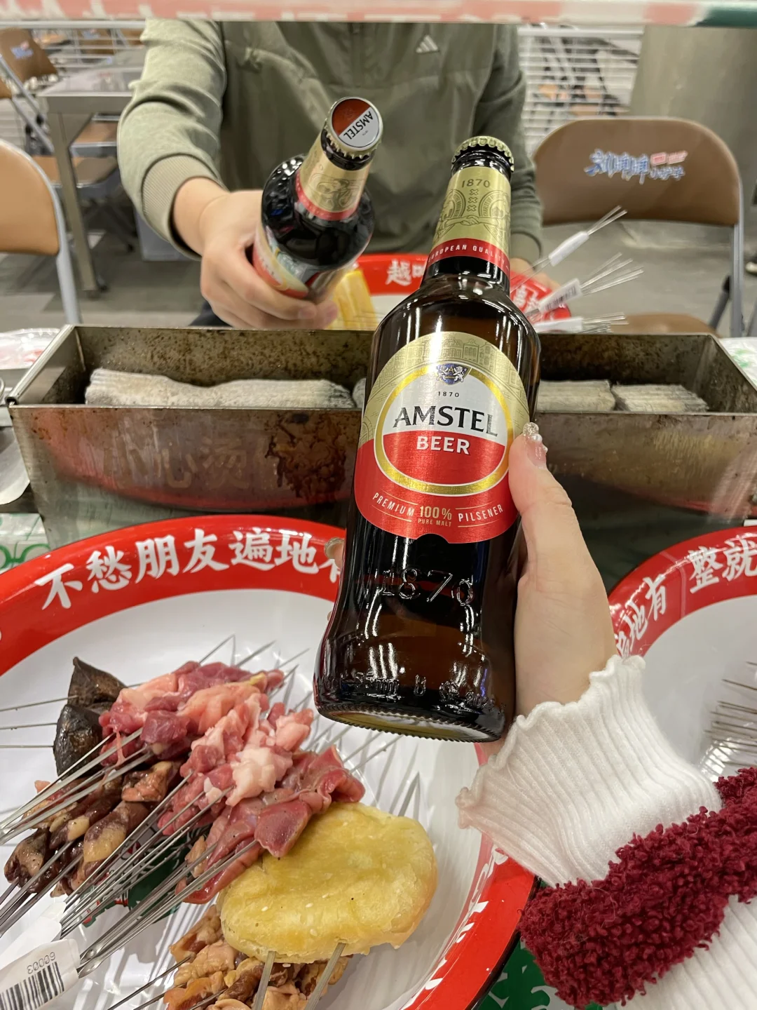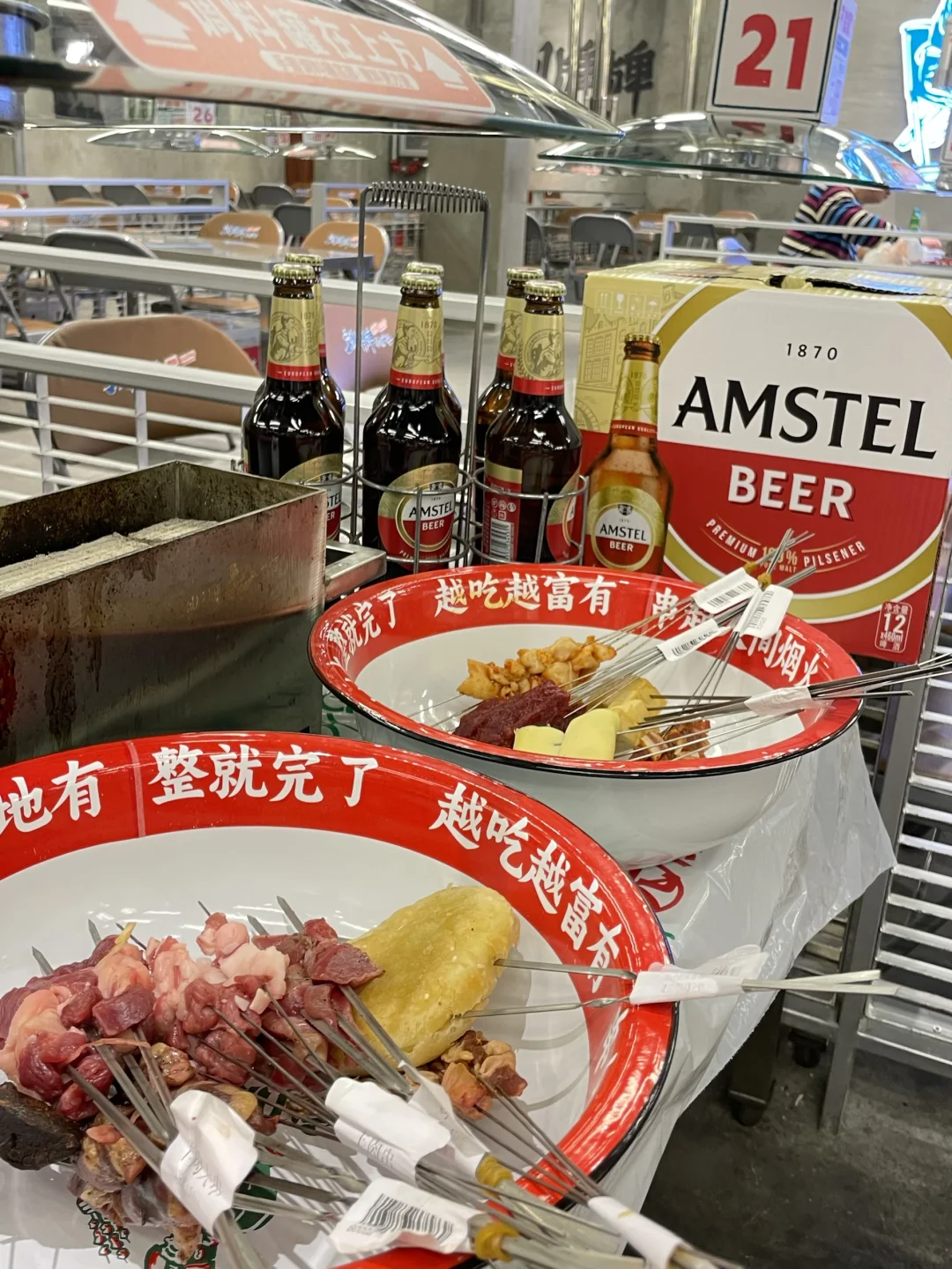 生活就是你别管🈶多少的烦心事 都要有快乐的追求!! 终于周末啦,和朋友👭一起喝点小酒,吃点儿烤串,快乐一下!!! 今天,我们喝红爵哟!!! 老板说这个牌子源自阿姆斯特丹 💯全麦酿造的,清爽的颜色让人很舒服 味道果然也很好,入口有淡淡的麦香很清爽 耐人寻味的,回甘超nice !!! 入口很纯净,很柔和 以后我朋友聚会就喝这个啦! 无论是吃串串还是火锅🍲适配度都超好! 夜晚,来吃串的人是真不少 这里都是自己选串,自己动手烤 再来上一杯红爵,小生活的惬意 生活实在是太美妙了‼️‼️