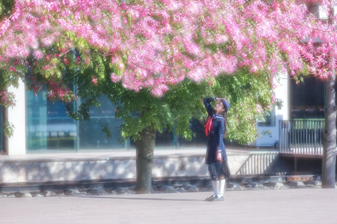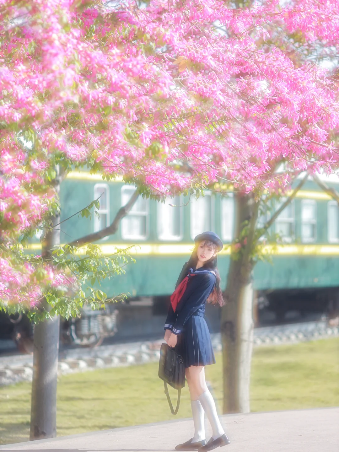 放学了|日系jk异木棉花树电影氛围火车拍照