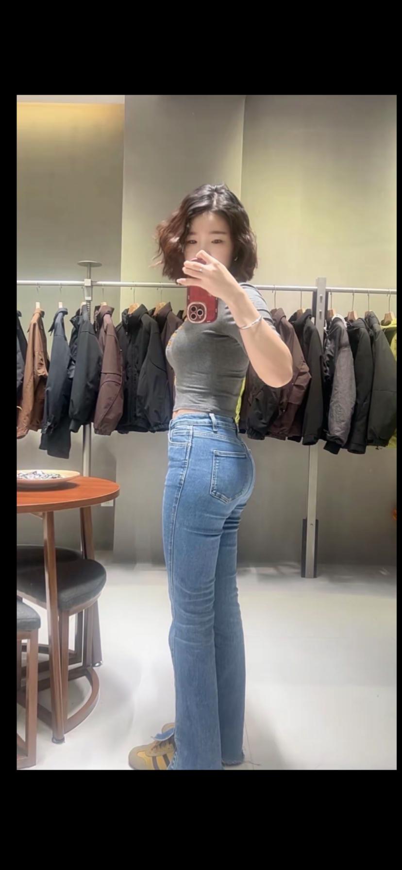 牛仔裤搭配灰色上衣,简约又时尚!👖👗