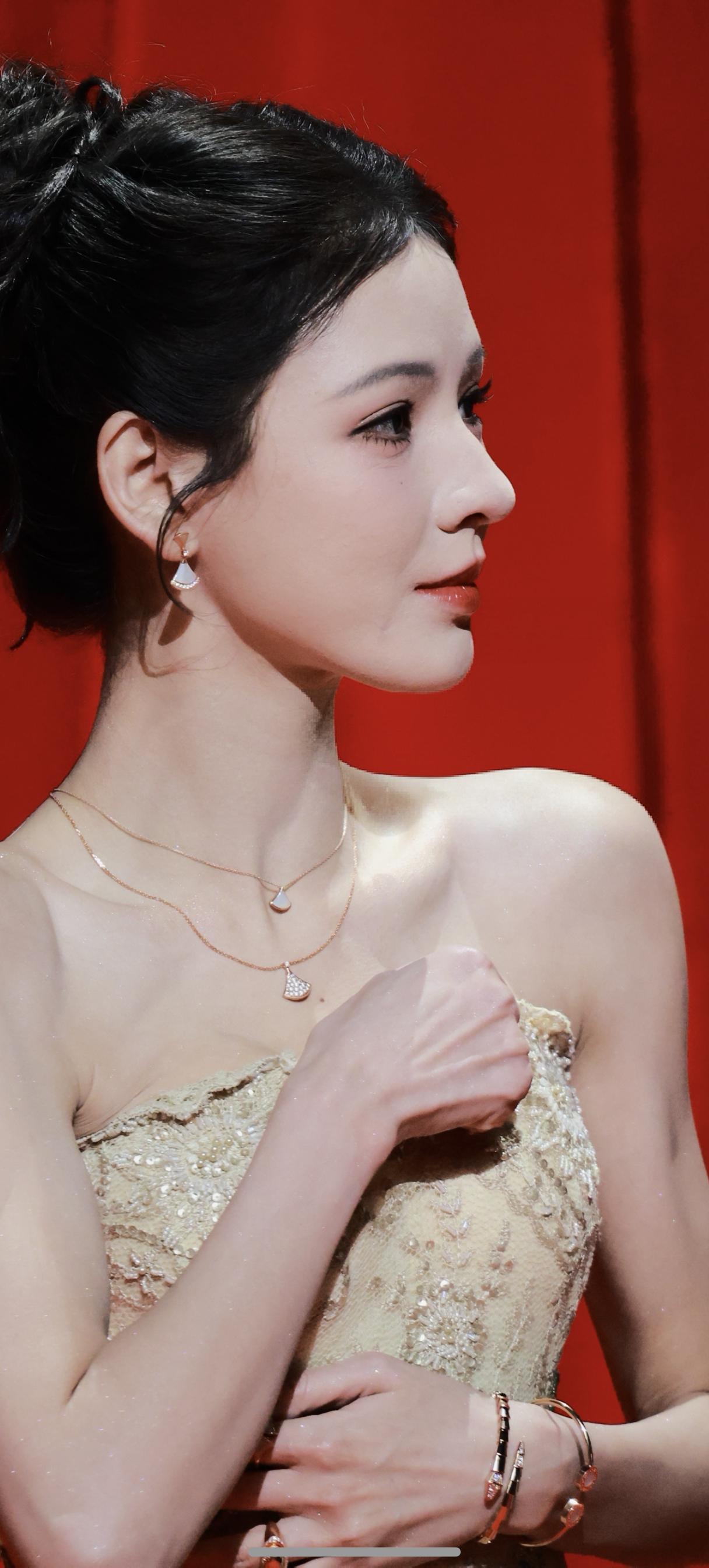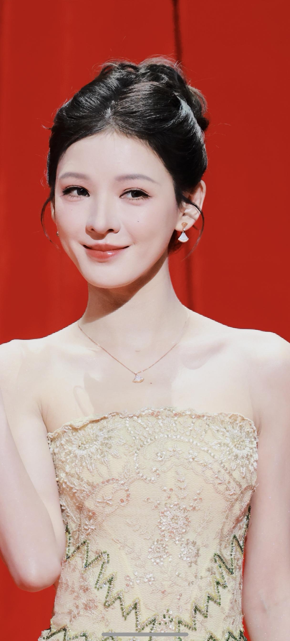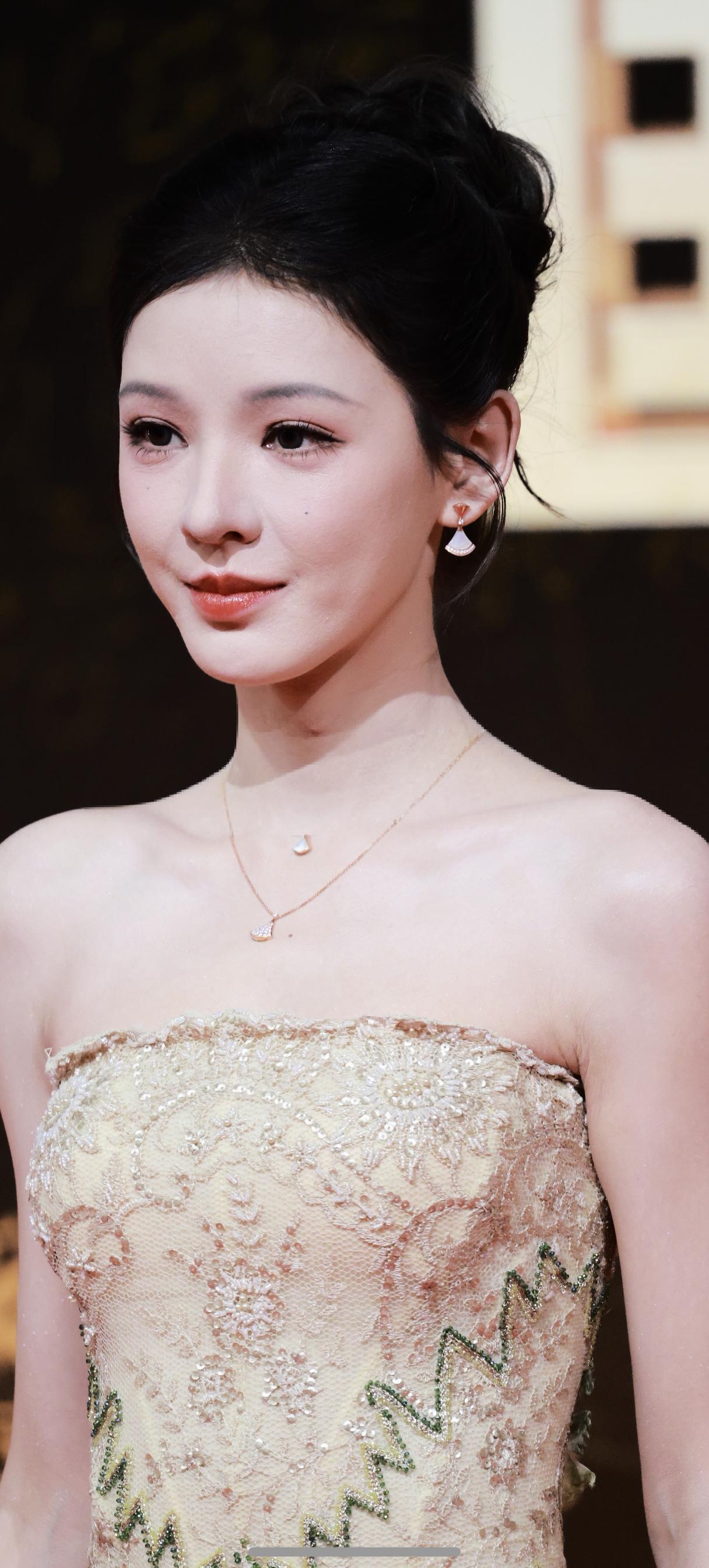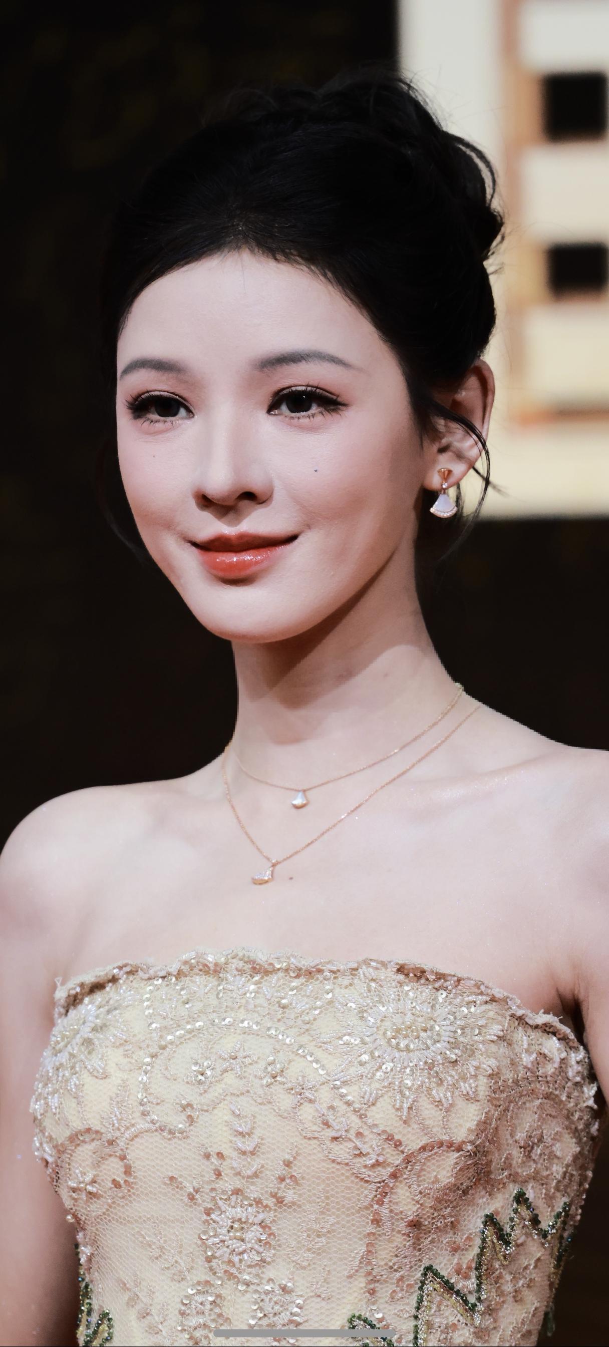 张婧仪,颜值清丽,气质优雅,一袭礼裙更衬得温婉大气,如星光下的优雅精灵。