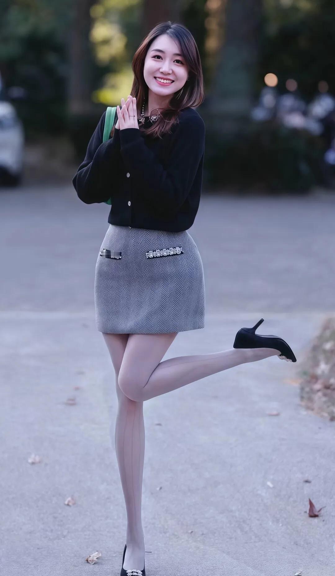 灰色毛衣+短裤,简约又时尚,搭配高跟鞋,轻松出街!🍂👗👠