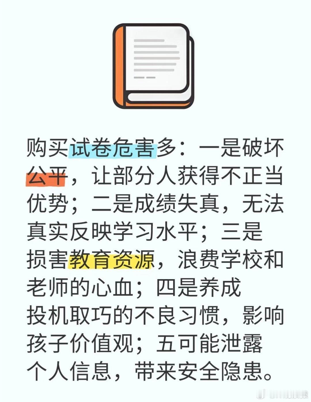 严禁向任何组织和个人购买试卷教育部:严禁向任何组织和个人购买试卷。网友列举购买试卷的危害,你们怎么看?
