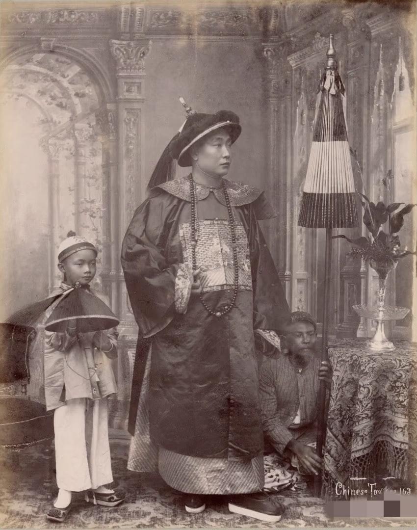 这是一张1900年,在新加坡拍摄的照片,图片中的官员,官服上的补子,大家能看出来