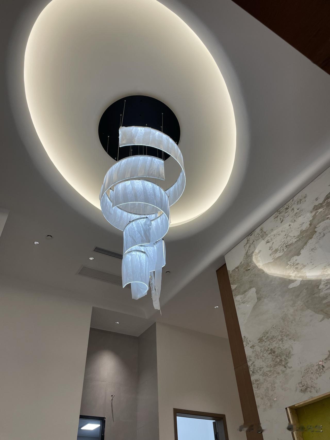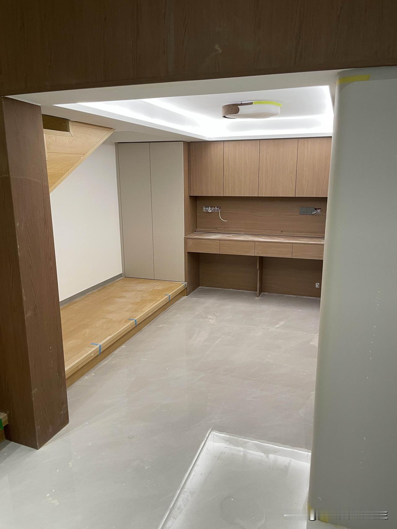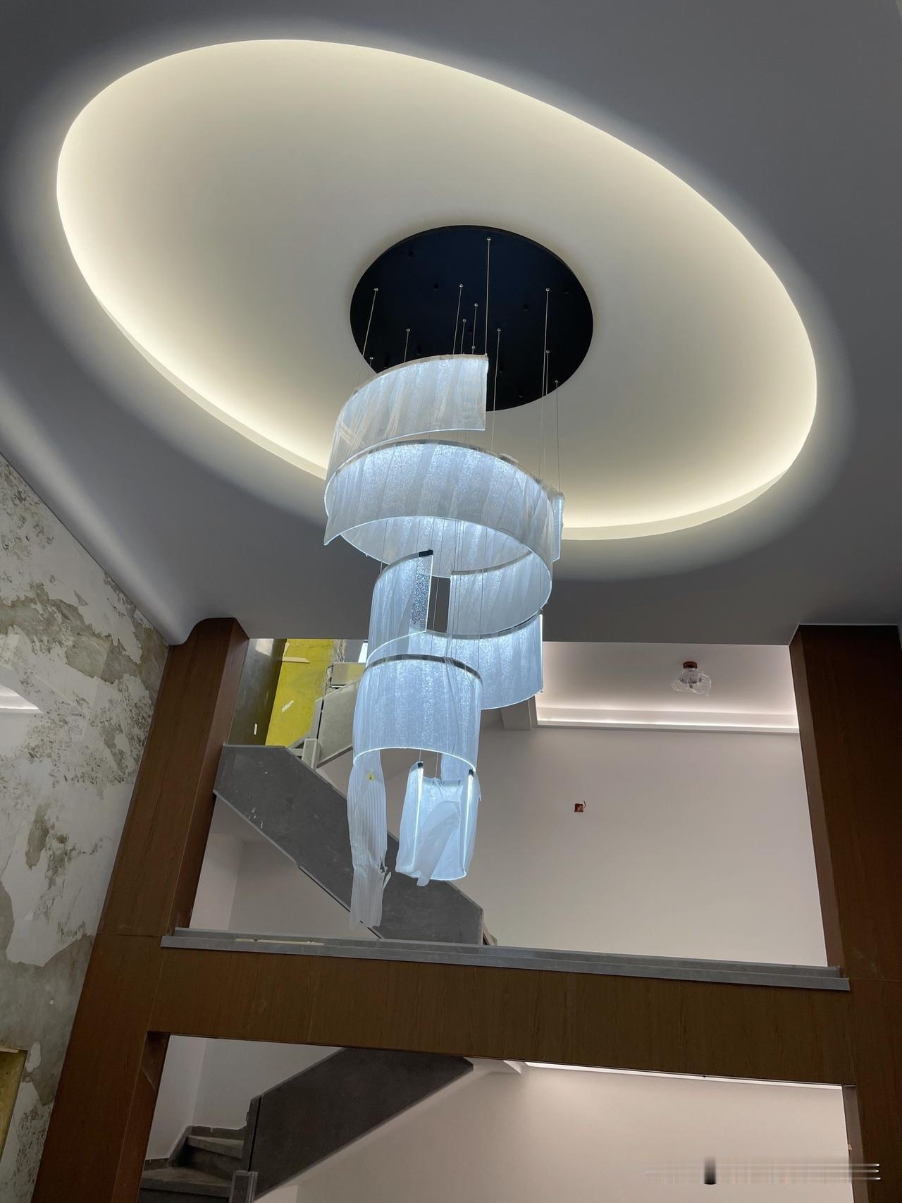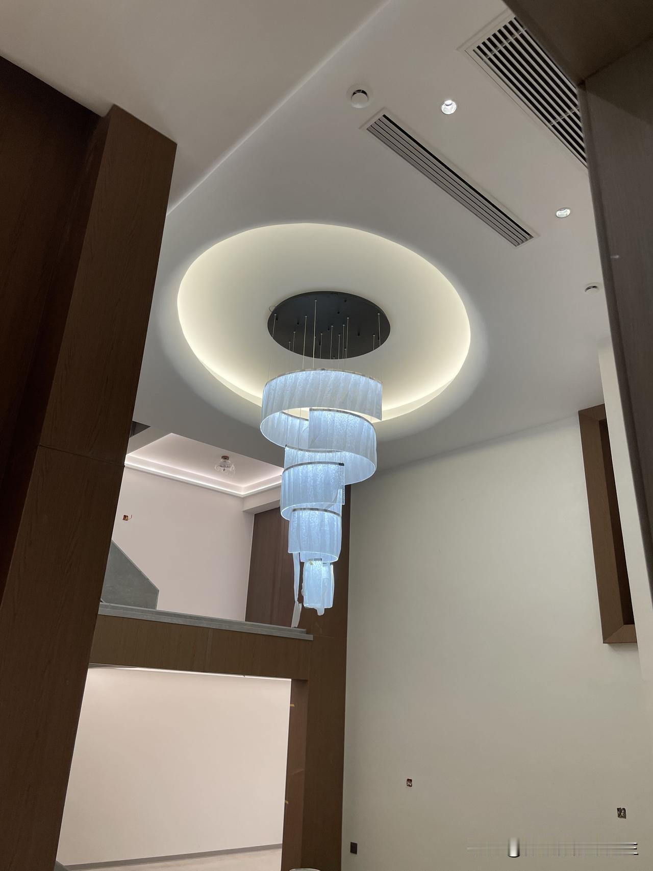 现在施工的这个挑空地下室层高是4.8米,马上接近完工啦。地下室做了中央空调和新风系统,整体装修还是比较大方的。 挑空客厅做的一个椭圆天空之眼的造型,吊顶确实比较出效果,好多人看了都说好看。 地下室面积比较大,中间做了夹层,有孩子的休息房间,还有学习和娱乐的空间。另外还有女主人的衣帽间,男主人的茶室,还有卫生间,单独做的提升泵排水。整体功能也比较齐全,就是比较费钱。 目前施工接近5个月了,马上进入收尾保洁,期待新家完工效果 复式挑空客厅 客厅复式挑空