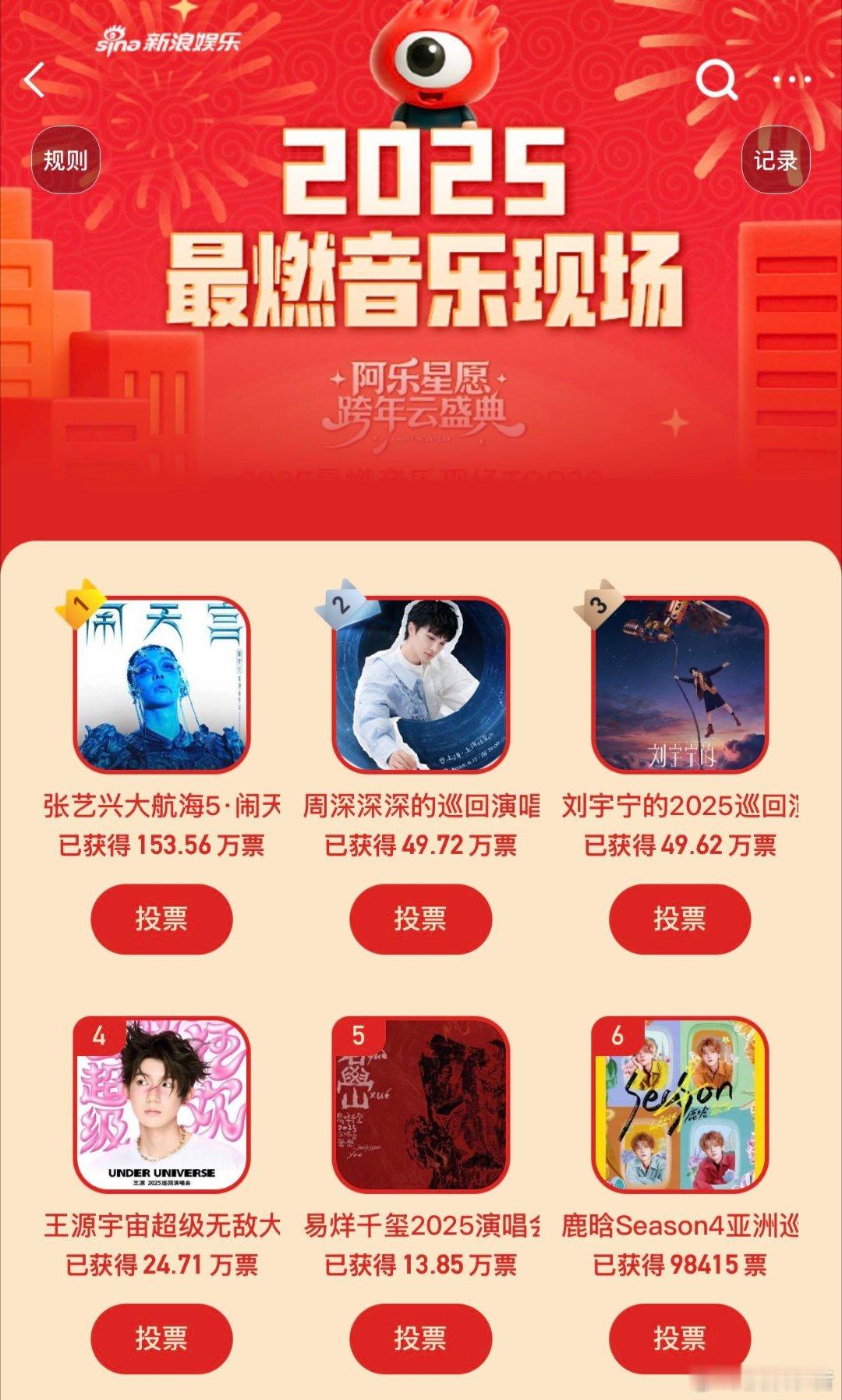 张艺兴大航海巡演人气断层 竞争激烈的直接看傻了!张艺兴以153.56万票断层领跑2025最燃音乐现场榜单,这大航海巡演果然名不虚传,不愧是能登上鸟巢的现象级演出,贝壳r吃的也太好了吧!