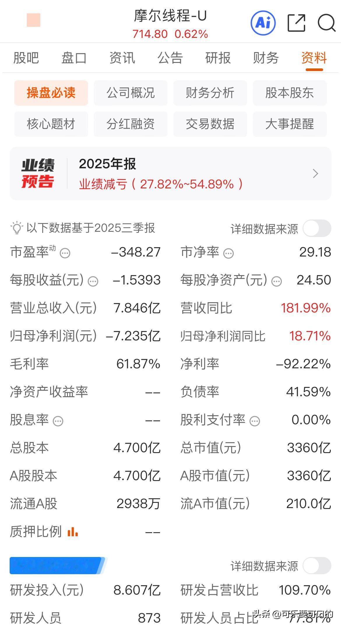 沐王登基!自今日始,大A已有寒王、摩王以及沐王三王!大A有这三王,纵使它30万亿的英伟达又有何惧? 寒武纪(寒王),市值5548亿,三季报营收47.07亿,净利润16.05亿! 摩尔线程(摩王),市值3360亿,三季报营收7.85亿,亏损7.24亿! 沐曦股份(沐王),市值3320亿,三季报营收12.36亿,亏损3.46亿! 虽然说现在摩王和沐王都还是亏损状态,但是谁还不是从无到有,从小到大,然后做大做强呢?当初的寒王不一样也是连续亏损了多年,这不今年也盈利了! 所以说不要看它们现在没有盈利就认为它们不行,科技股炒的就是未来!