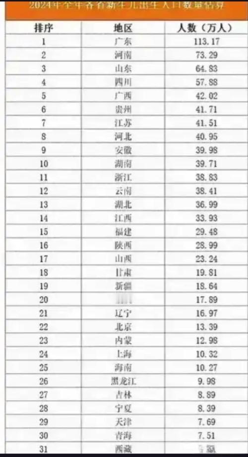 广东不愧是“催生”界的扛把子!113万新生儿再次登顶,连续七年霸榜第一,这“生生不息”的战斗力真是稳如老广的汤。 其实不止广东能生,河南山东等14省也贡献了全国七成以上的新生儿,看来“生娃大军”正悄悄回暖! 但不得不说,广东的吸引力确实在线——经济强、机会多,年轻人敢生也养得起。难怪网友调侃:“广东街头,可能一半都是新广东人!” 生育回暖背后,是地方活力与生活信心的双重加持。这波“婴儿潮”,你看好哪省后来居上呢?[偷笑] 广东出生人口第一 生育大省排名