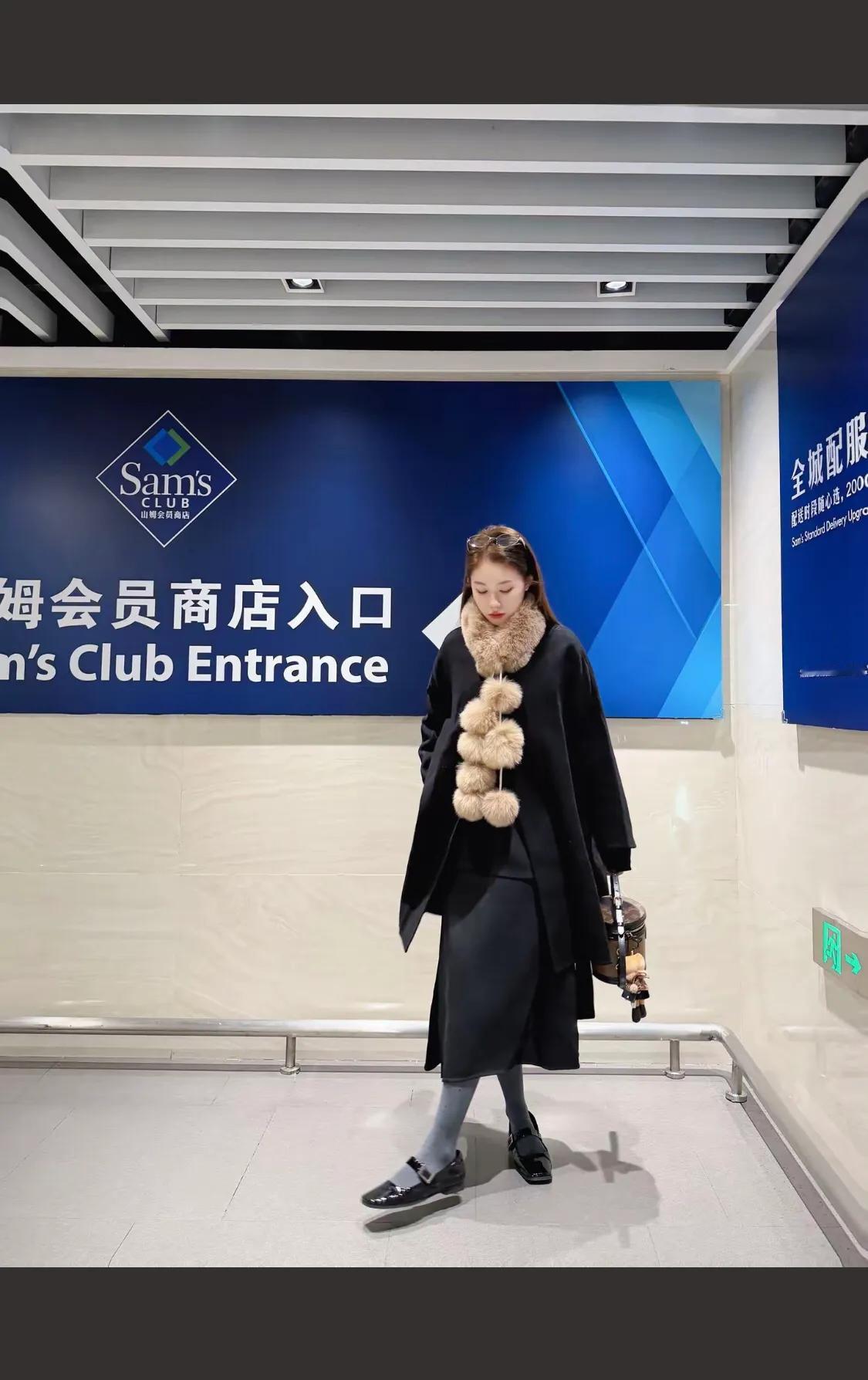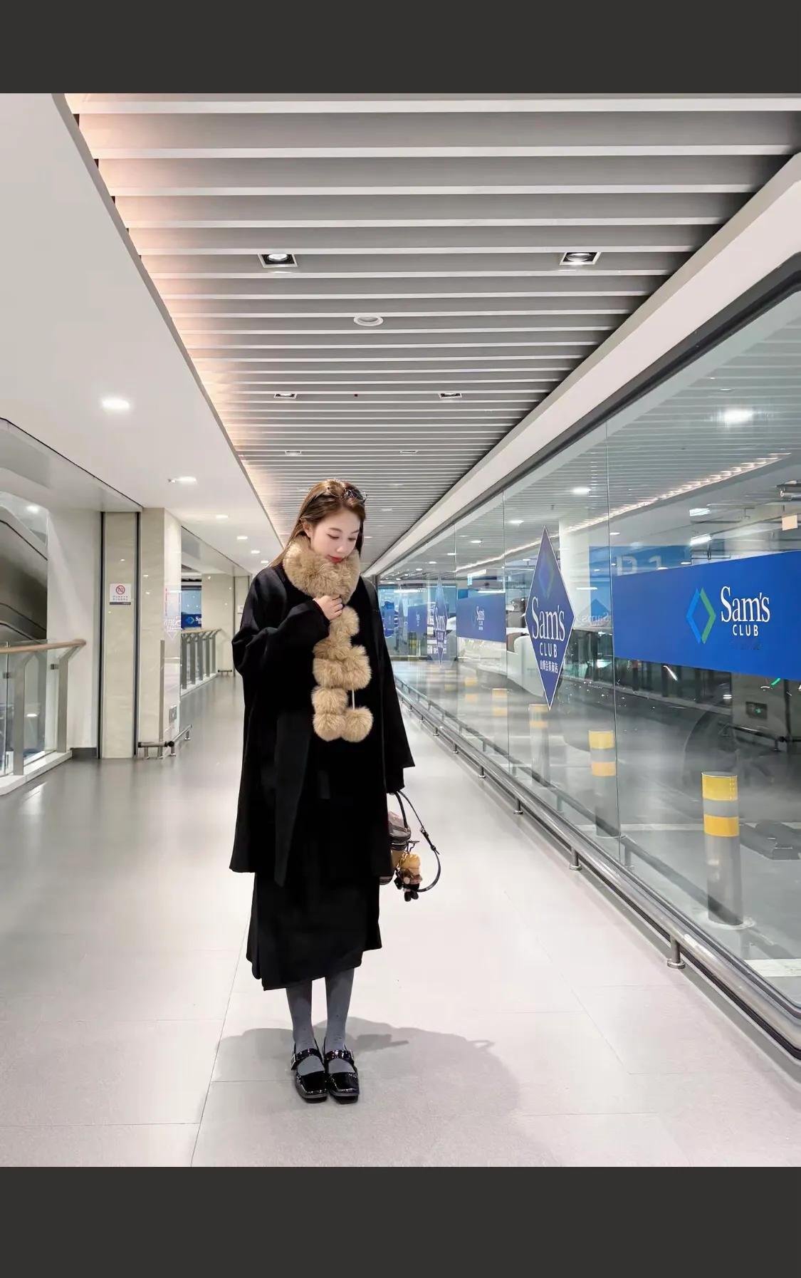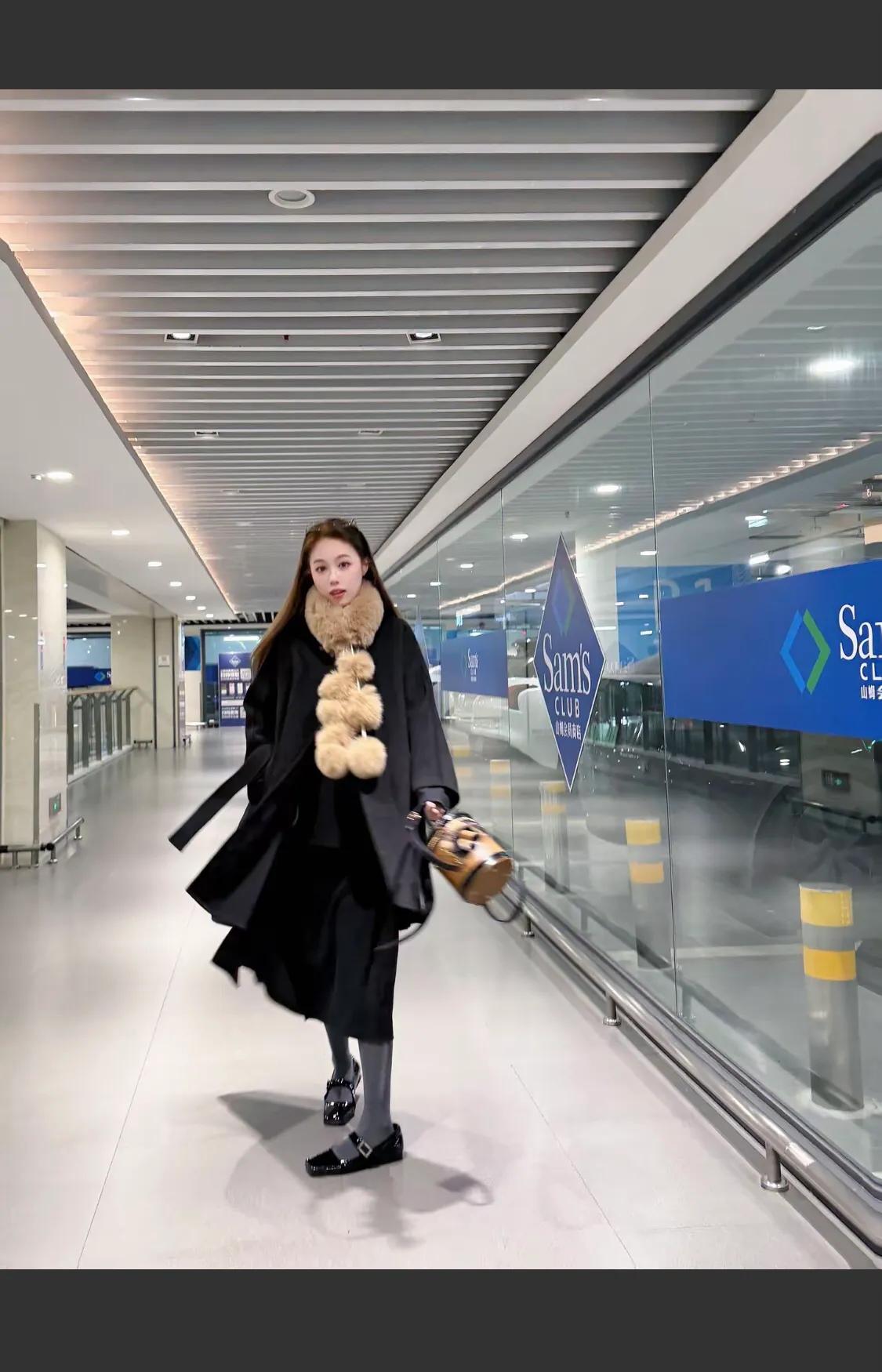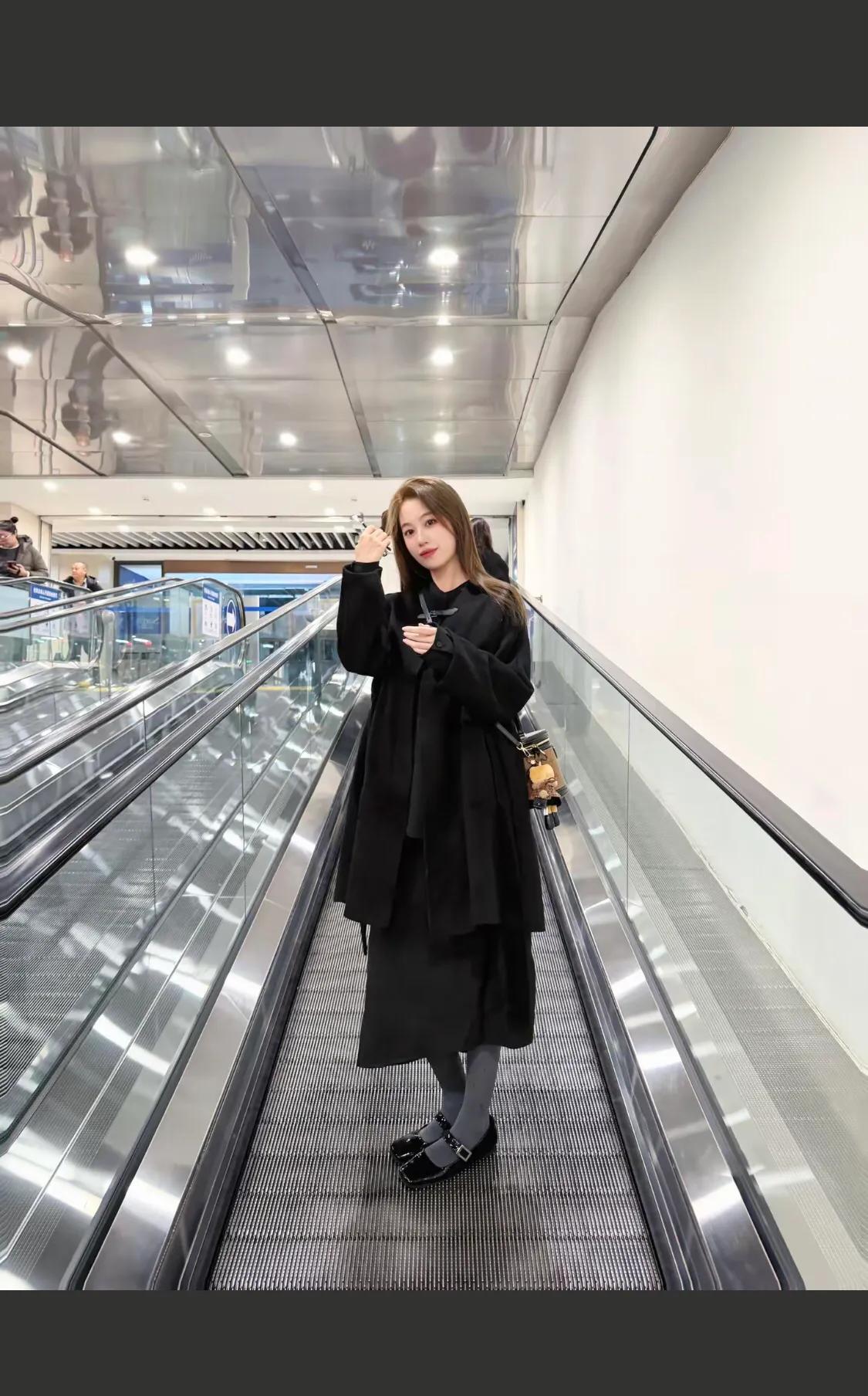 黑色大衣搭配灰色丝袜,优雅又时尚!👗👠