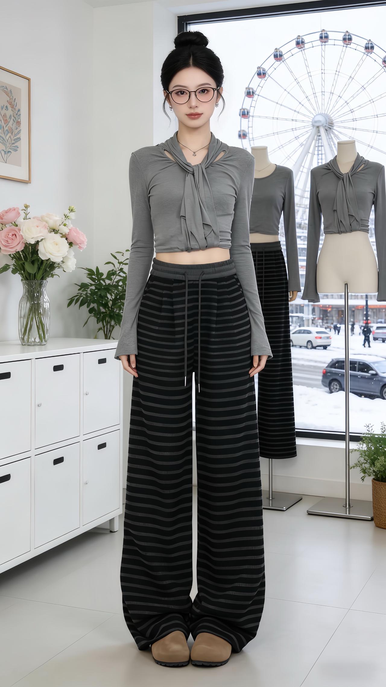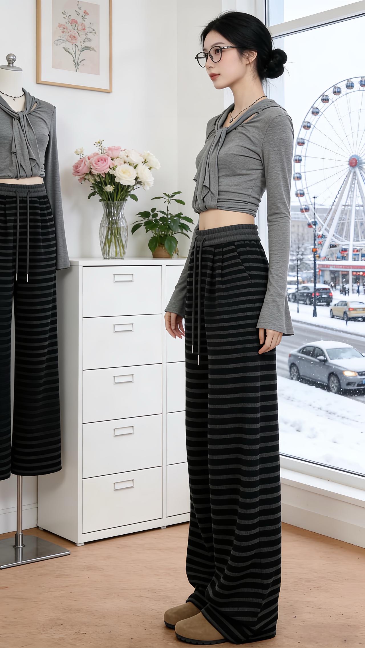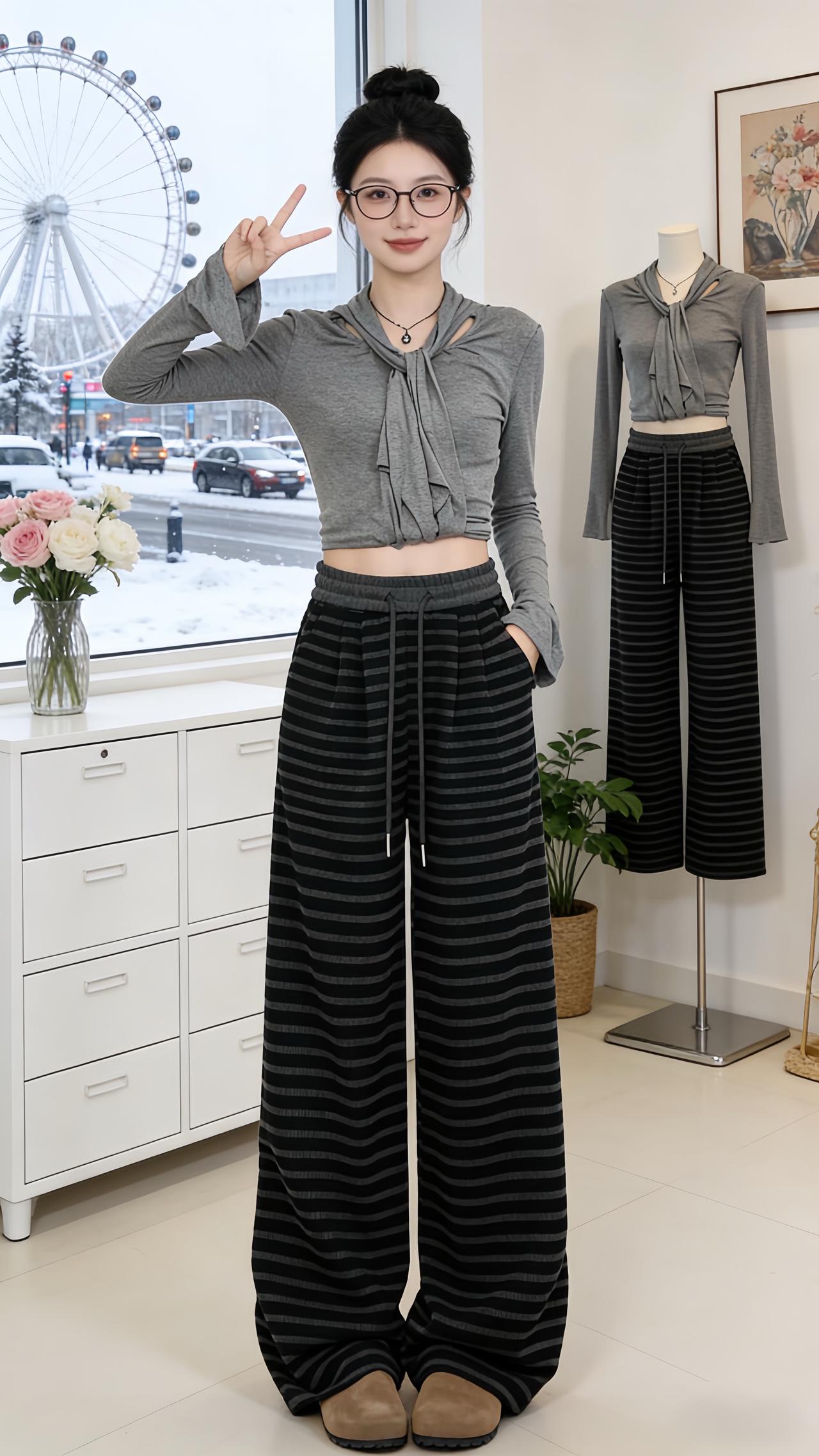 小个子穿搭 轻熟穿搭 休闲时尚穿搭 冬季保暖裤 条纹控