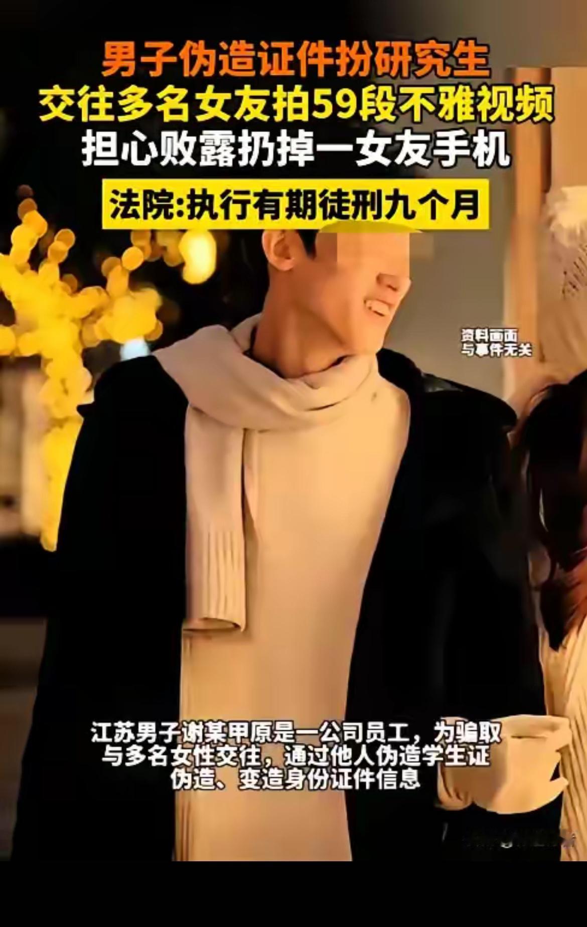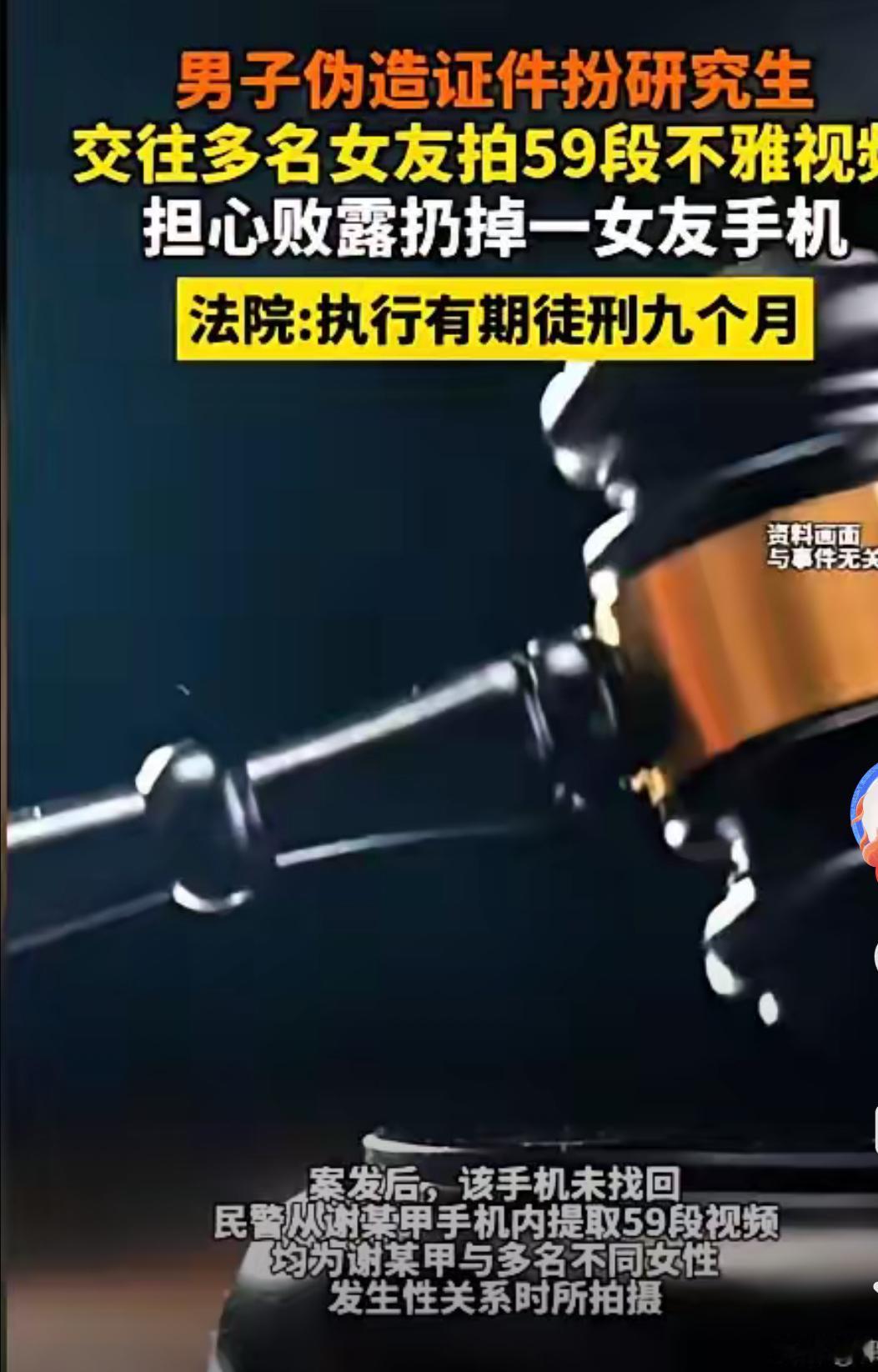 现在这骗子手段真是层出不穷。有个男子伪造证件冒充研究生,去骗拍女生不雅视频,结果被判刑九个月。这人也太没底线了,为了达到自己龌龊的目的,伪造身份欺骗女生。 研究生在很多人眼里是有学识、有素养的群体,他却利用这种形象去行骗。女生们可得提高警惕,别被一些虚假的身份给迷惑了。九个月的刑罚算是给他一个教训,也给其他人提个醒,违法犯罪的事千万别干,不然迟早要为自己的行为付出代价。希望大家都能在生活中多留个心眼,避免遭遇类似的骗局。