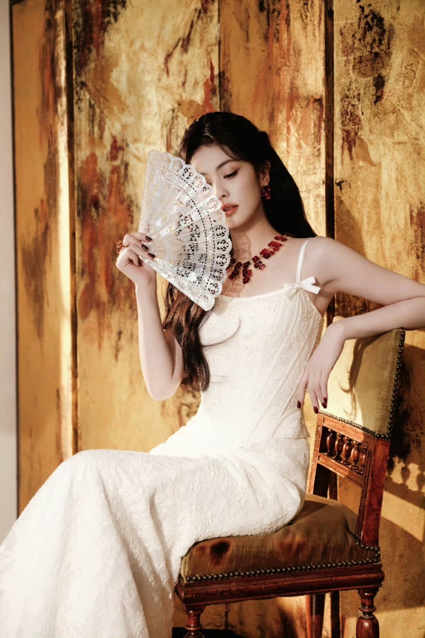 白鹿白鹿白色蕾丝钻饰礼服 白鹿活动造型,2026春夏系列蕾丝钻饰礼服,今天搭配的珠宝配饰也存在感满满,非常养眼的活动Look~ 白鹿好抢眼的珠宝