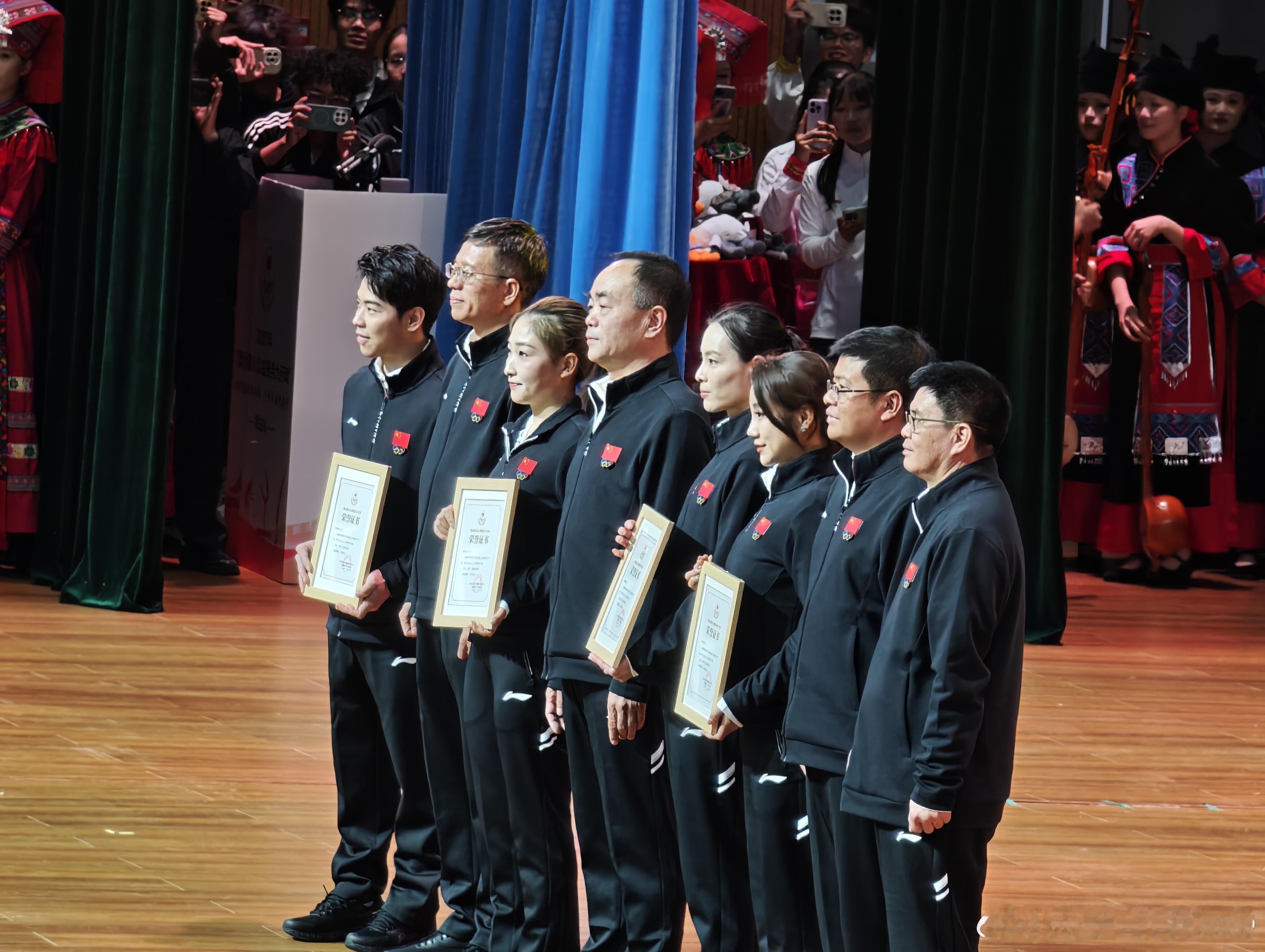 刘诗雯吴敏霞现身广西高校刘诗雯、吴敏霞及体操奥运冠军毕文静共同现身广西民族师范学