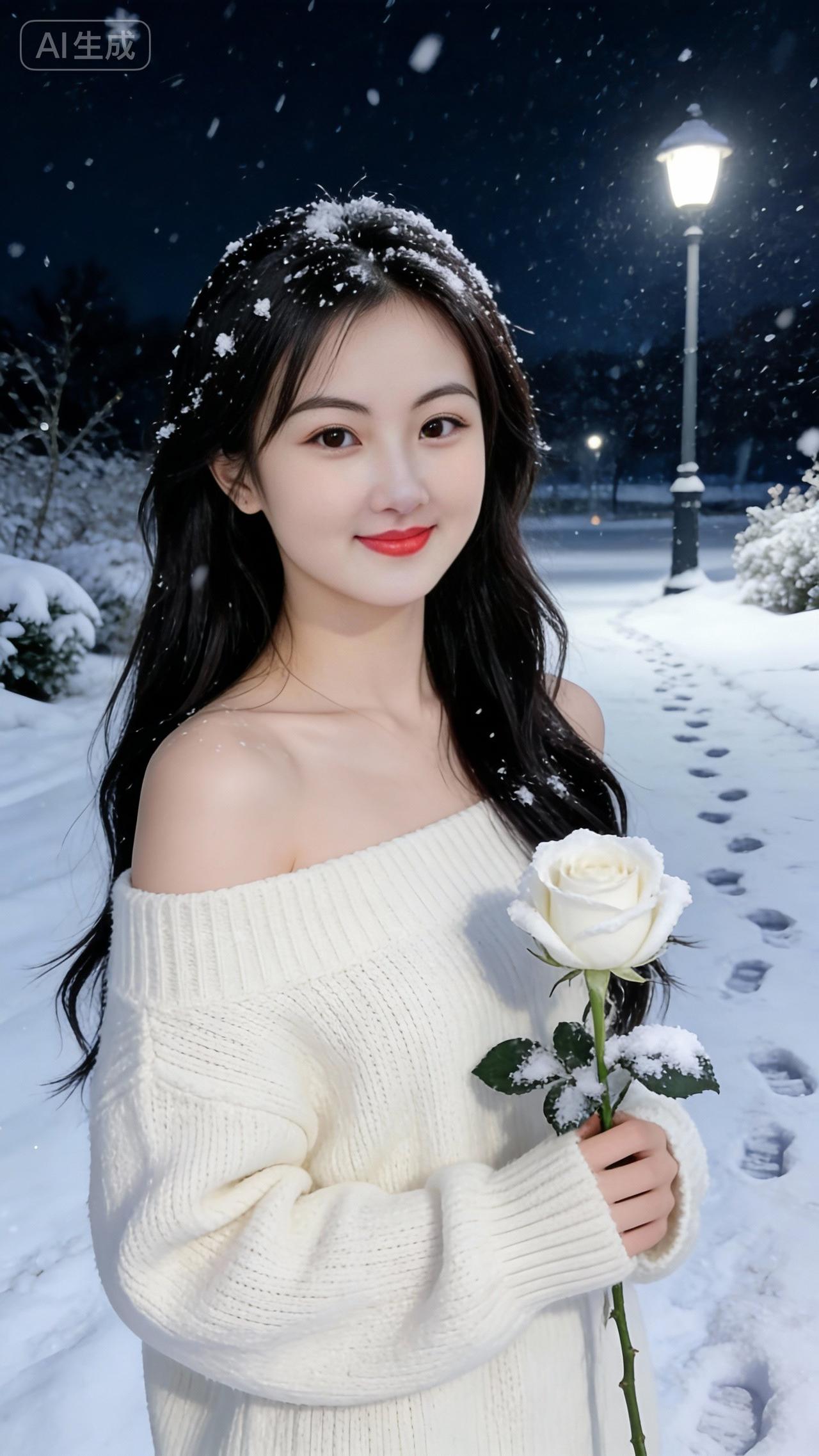一位棕色长发及腰、模样可爱的冷白皮女生,身着冬季随机搭配合理穿搭,其软糯的质感和