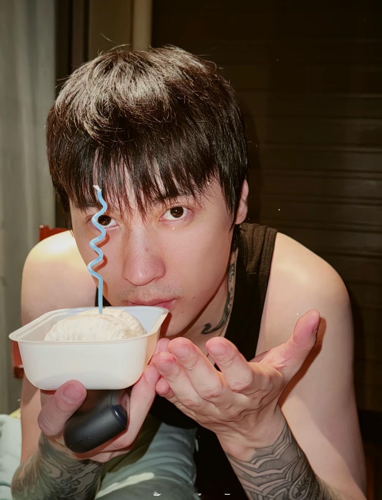 吴京为自己的父亲举办80大寿,桌子上摆满了各种各样的酒水饮料,最醒目的还是大窑,