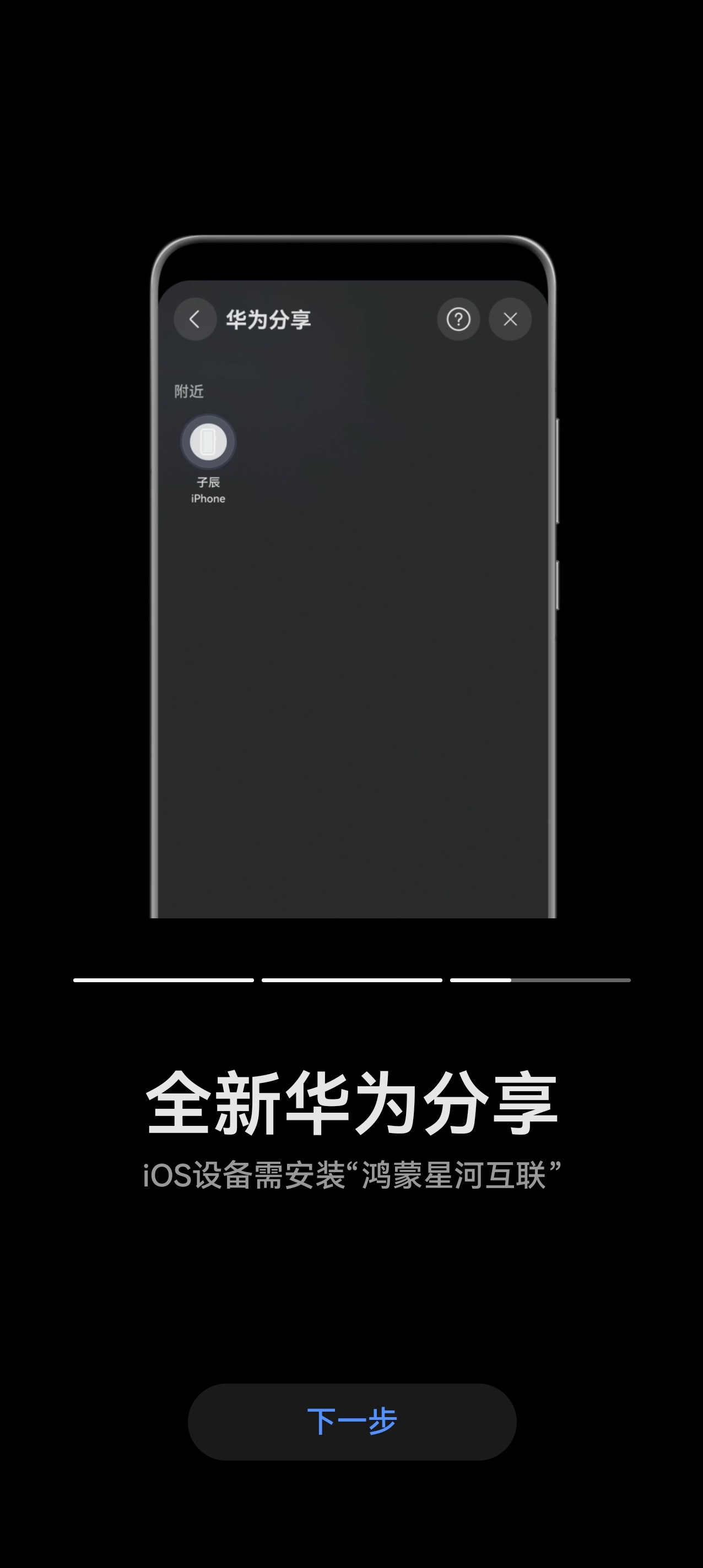 鸿蒙推送了 120 SP6 版本更新,这次给非 Mate80 系列机器加入了 AI 智感握姿、小艺对话修图和全新的华为分享,其中全新的华为分享是打破了和IOS的壁垒,只需要在你的iPhone上下载一个『鸿蒙星河互联』就可以互传文件了。遗憾的是,安卓机这边,还是只能和荣耀互传鸿蒙越用越香 我的鸿蒙体验 我的鸿蒙操作系统