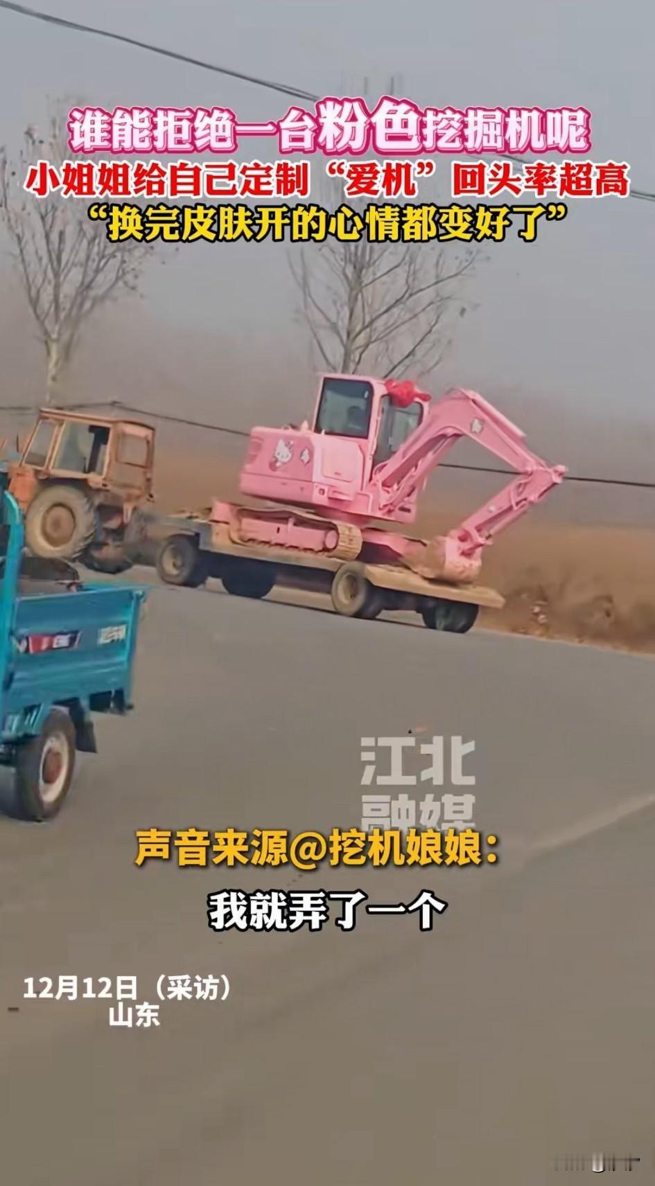 山东挖掘机女司机真的很有个性, 她买了一个挖掘机, 然后将它涂成了粉红色, 老公看到后, 有点儿怪她了, 毕竟这样的颜色有点儿过分了, 不过女子表示自己开的挖掘机, 自己有权做主, 开着粉红色的挖掘机, 回头率老高了, 自己也非常的开心, 毕竟这是她喜欢的颜色, 自己也干工程好多年了, 非常喜欢开这种颜色的挖掘机, 觉得这个挖掘机很有个性, 以后自己拍视频开直播也用的上, 毕竟现在可是全民直播时代, 每个人都有自己的特色, 粉色挖掘机就是这位山东女子的直播利器,毕竟有钱难买自己开心, 大家对于这位山东女子的粉色挖掘机怎么看? 奋进新山东 挖掘机女朋友 挖掘机女工 女主播挖掘机 挖掘机女销售 挖机女机手 女侠挖掘机 挖掘机情侣