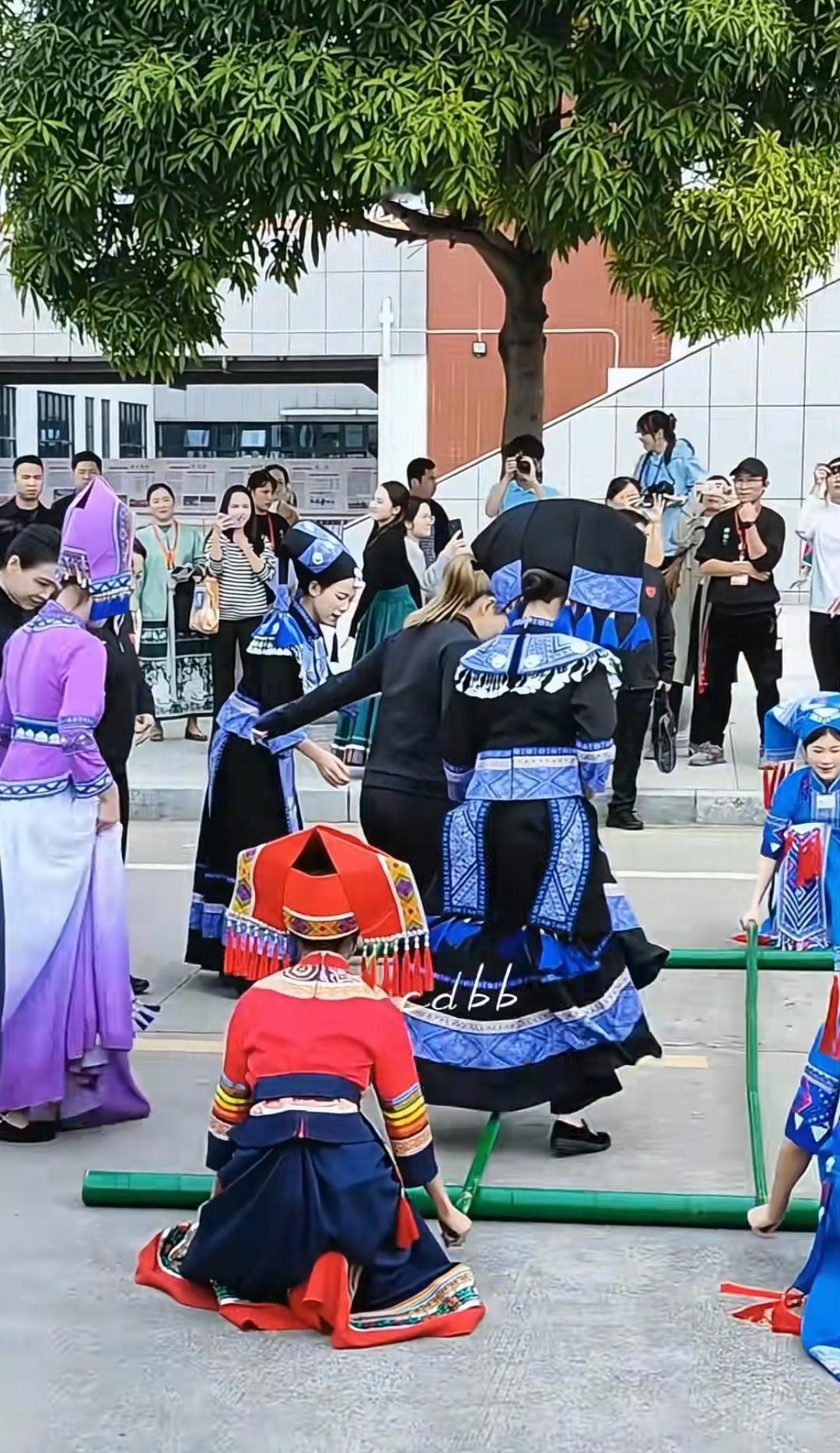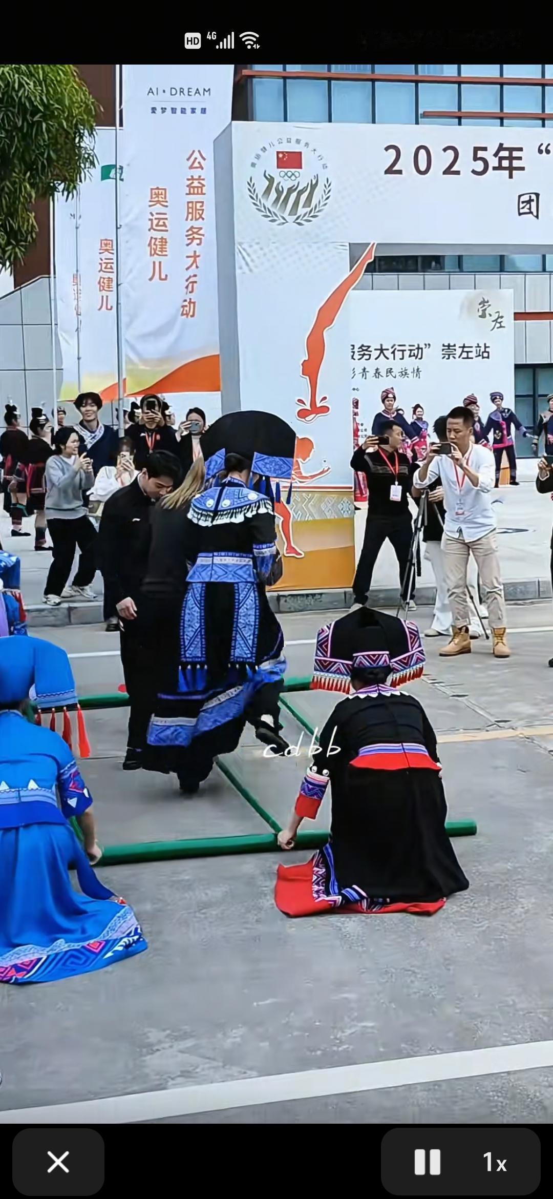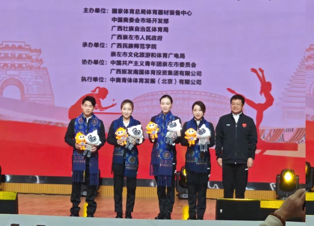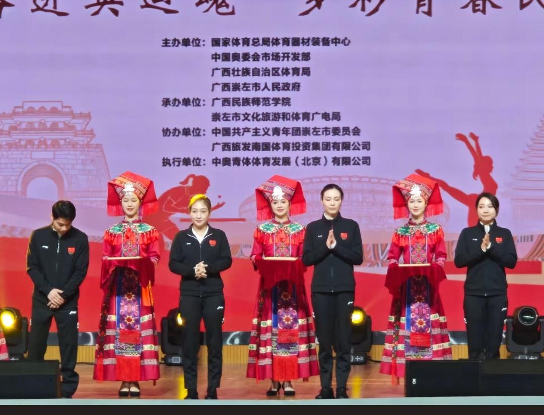 12月17日,刘诗雯和吴敏霞去了广西崇左,来到校园,受到了学校热情接待,这种穿梭校园的活动特别精彩。 刘诗雯和吴敏霞之所以来广西,是来参加“奥运健儿公益服务大行动”崇左站活动,她们一到,同学们在道路两旁进行舞龙表演,还有同学穿着黑色裙子,跳着民族舞欢迎。学校还给奥运健儿们安排了竹竿舞活动。 刘诗雯和吴敏霞在讲台上进行了交流分享,并与大家合影留念,收到了玩偶。