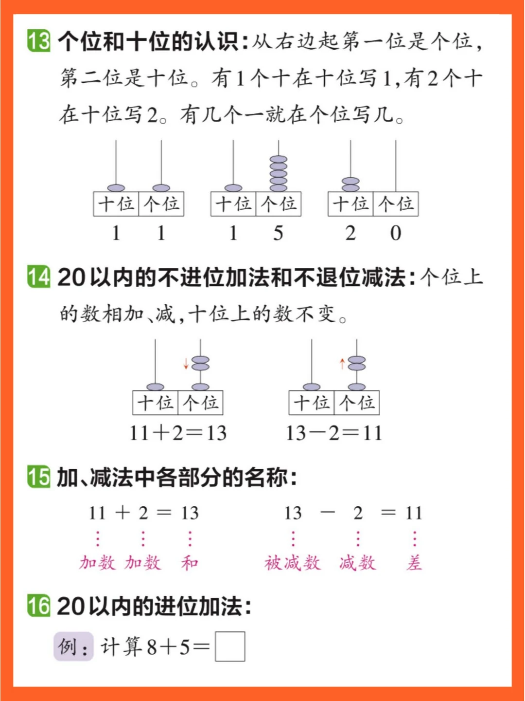 附上人教版一年级上册数学核心知识点归纳,助力你进行期末知识点梳理🎈🤩
