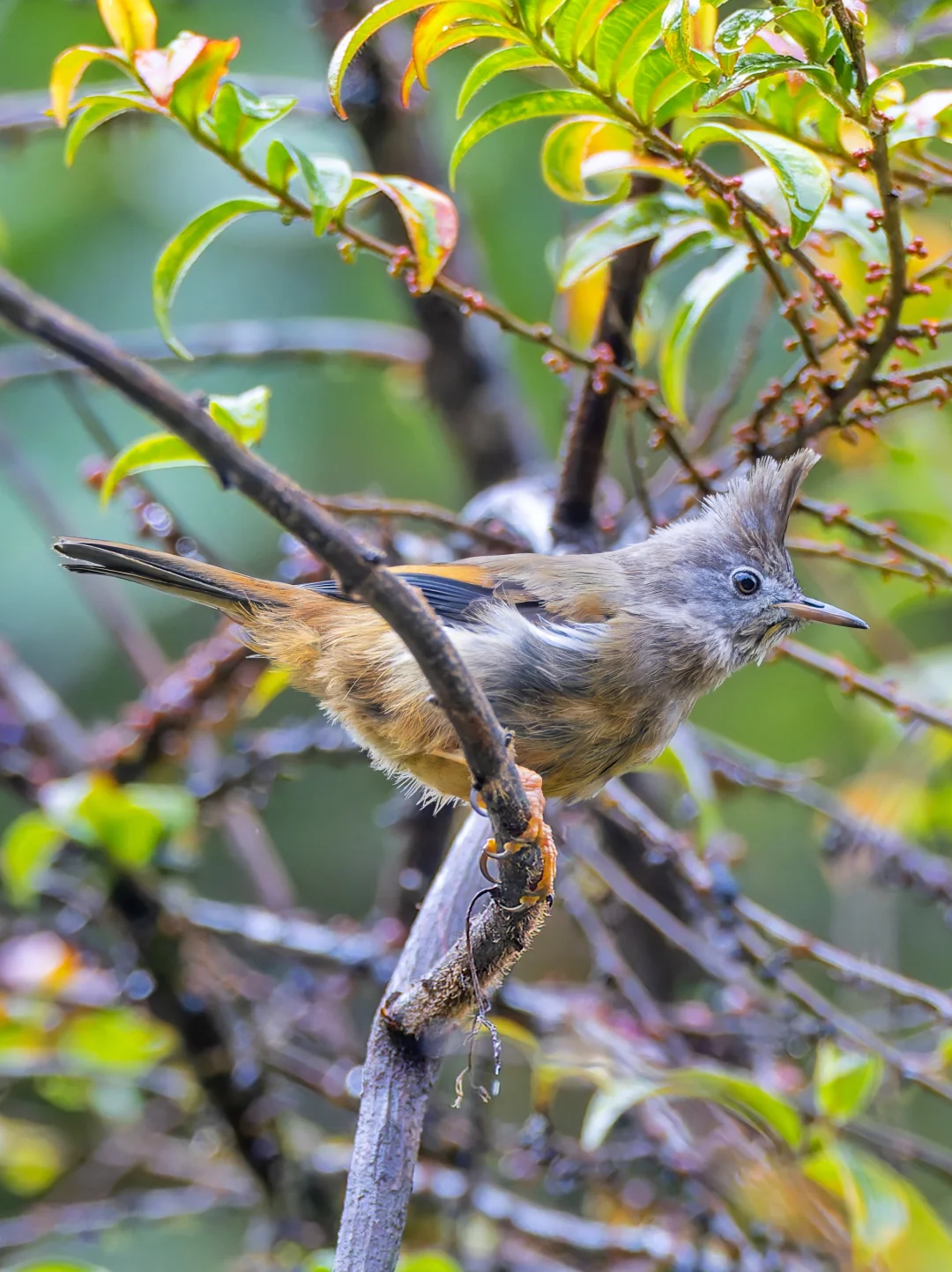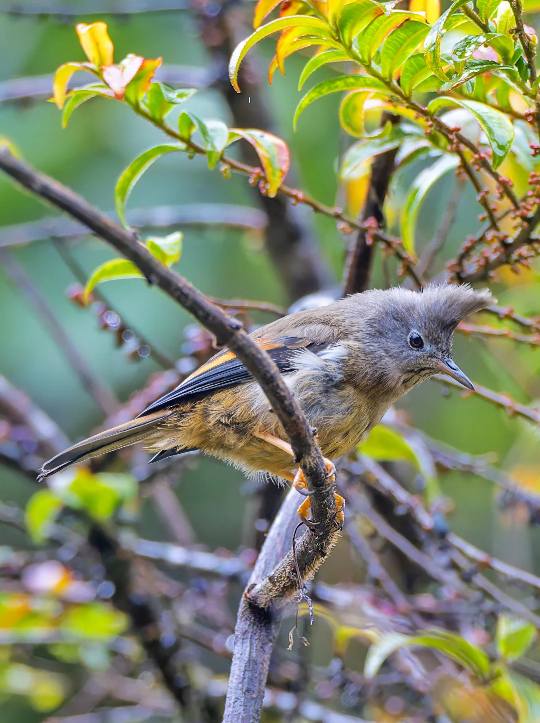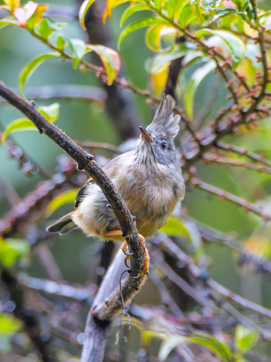 原创拍摄 纹喉凤鹛,Stripe-throated Yuhina,雀形目绣眼鸟科凤鹛属。一种分布于喜马拉雅山脉到我国西南部的小鸟。我国一共有10种凤鹛,目前我就差台湾独有的褐头凤鹛啦。 纹喉凤鹛有凤鹛都有的莫西干发型--冠羽,不过纹喉凤鹛颜色较为朴素,也就是橙黄色翼斑。淡棕白色的喉部带有黑色纵纹,是名字由来。