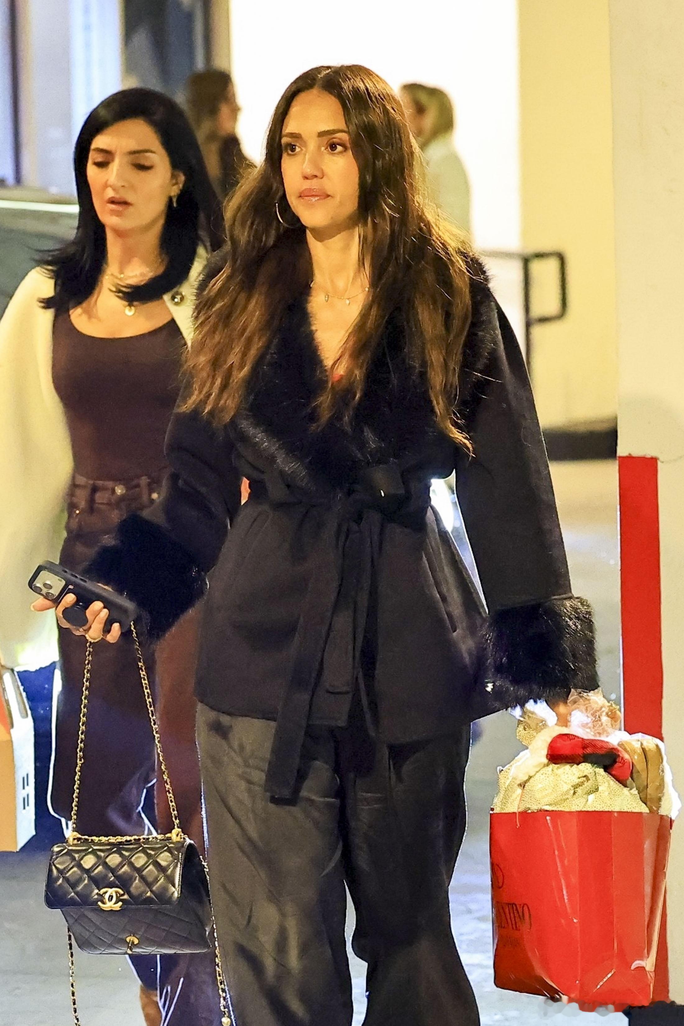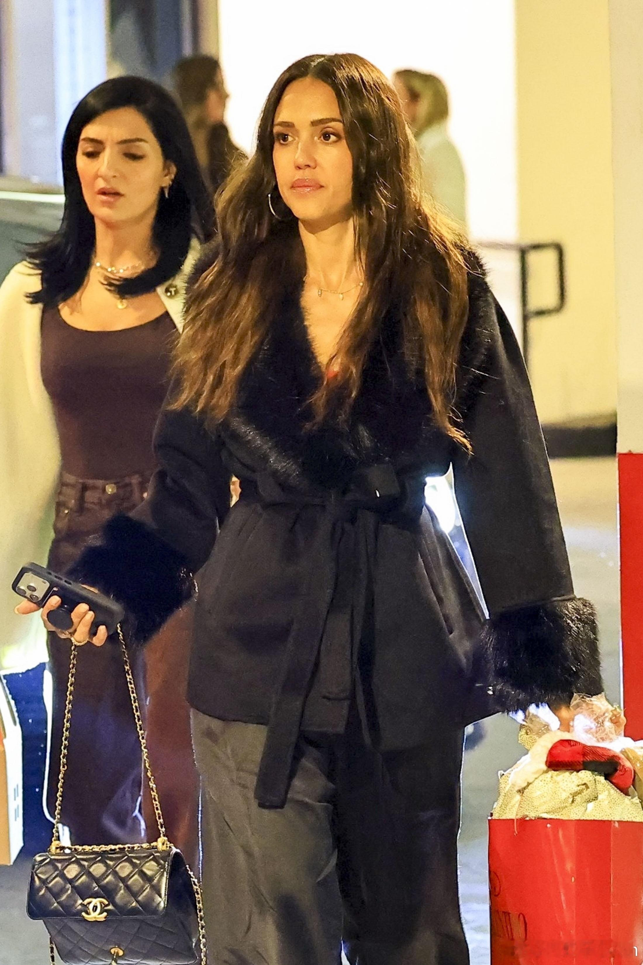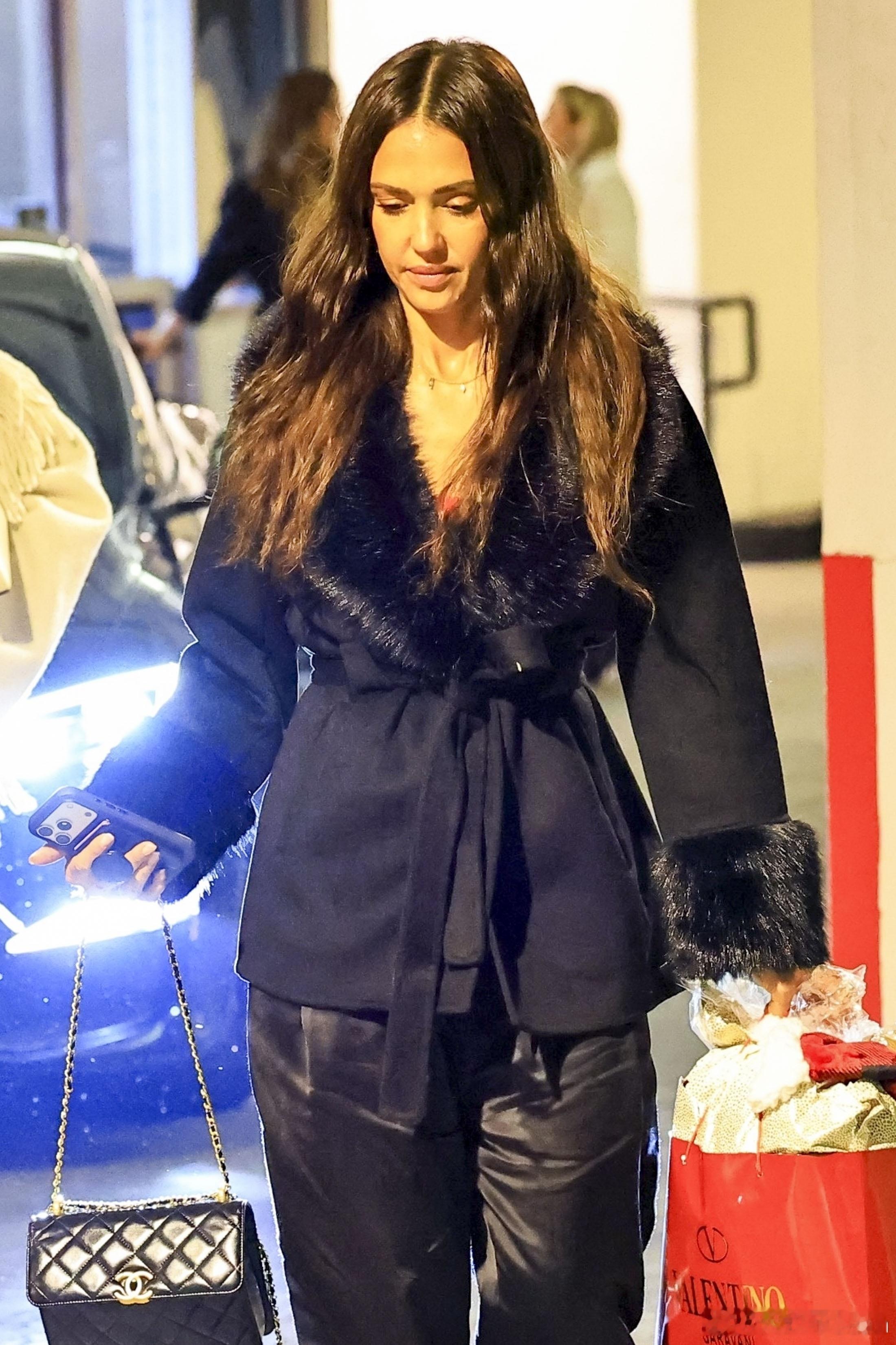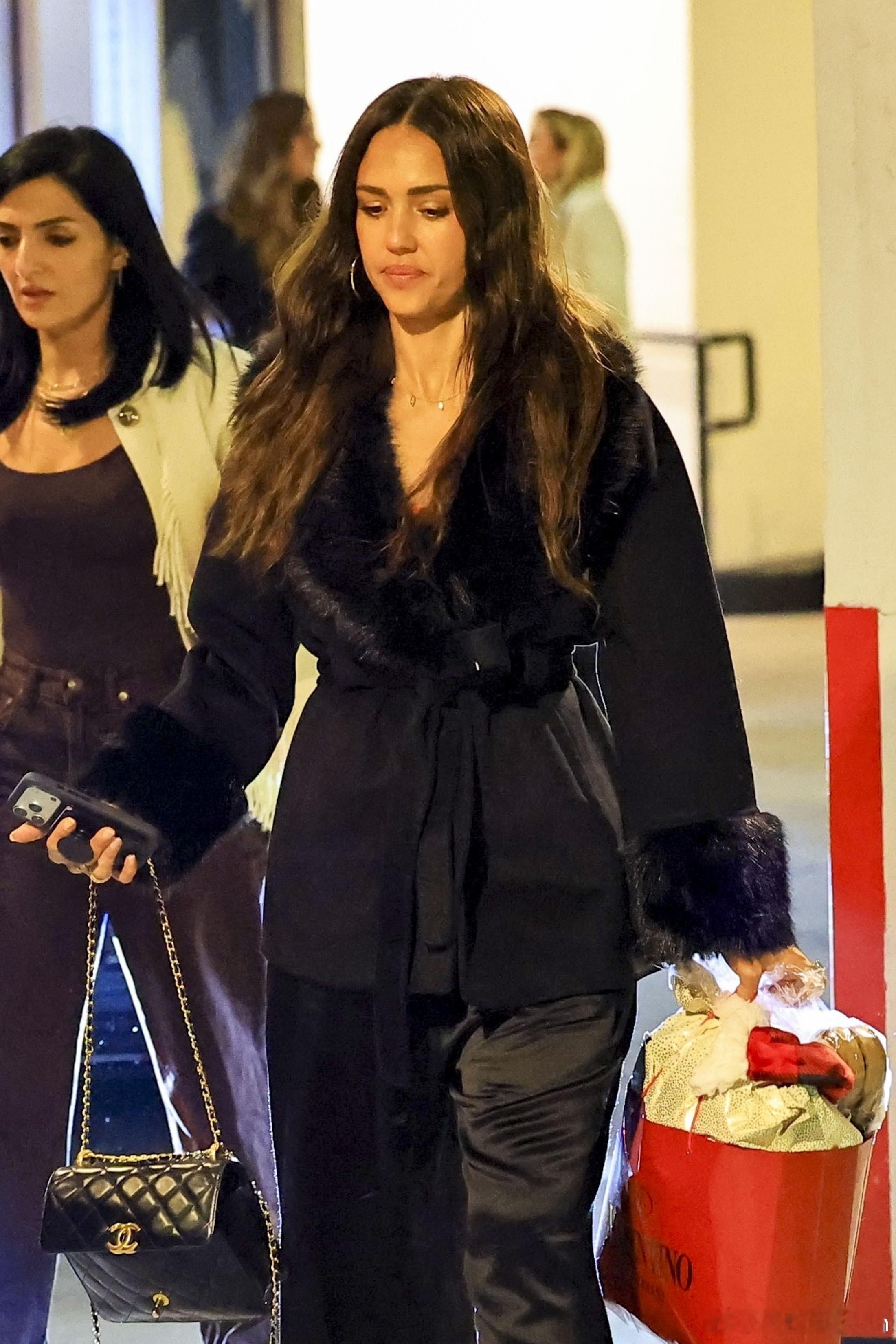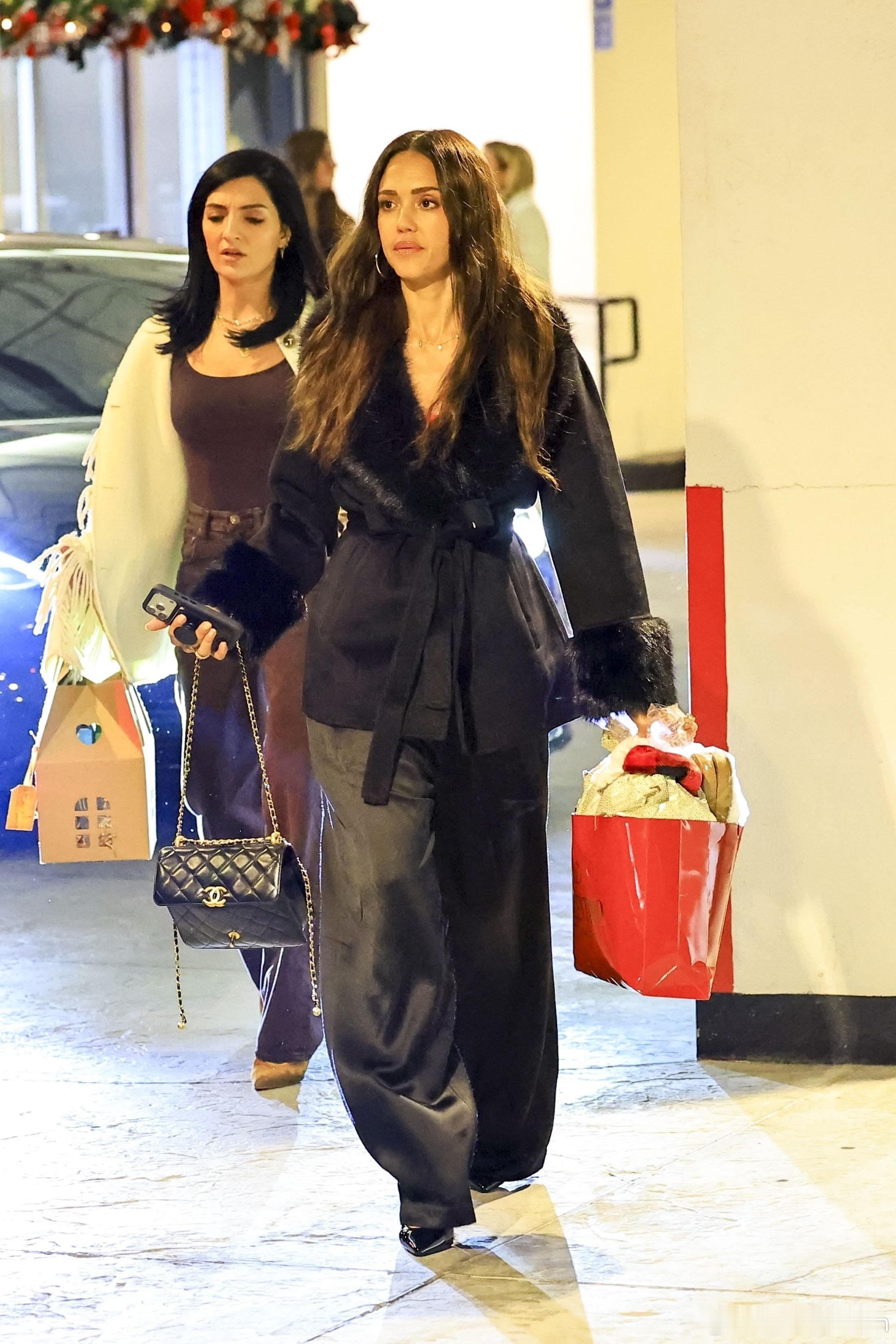 Jessica alba杰西卡阿尔芭在贝弗利山庄外出,芭姐提着一袋华伦天奴的伴手礼离开E Baldi意大利餐厅