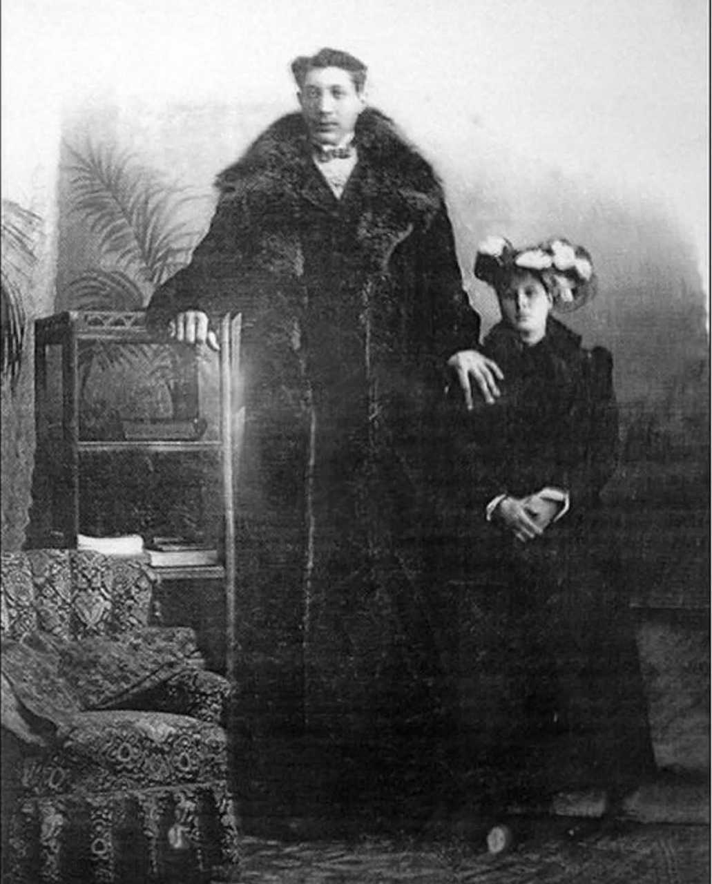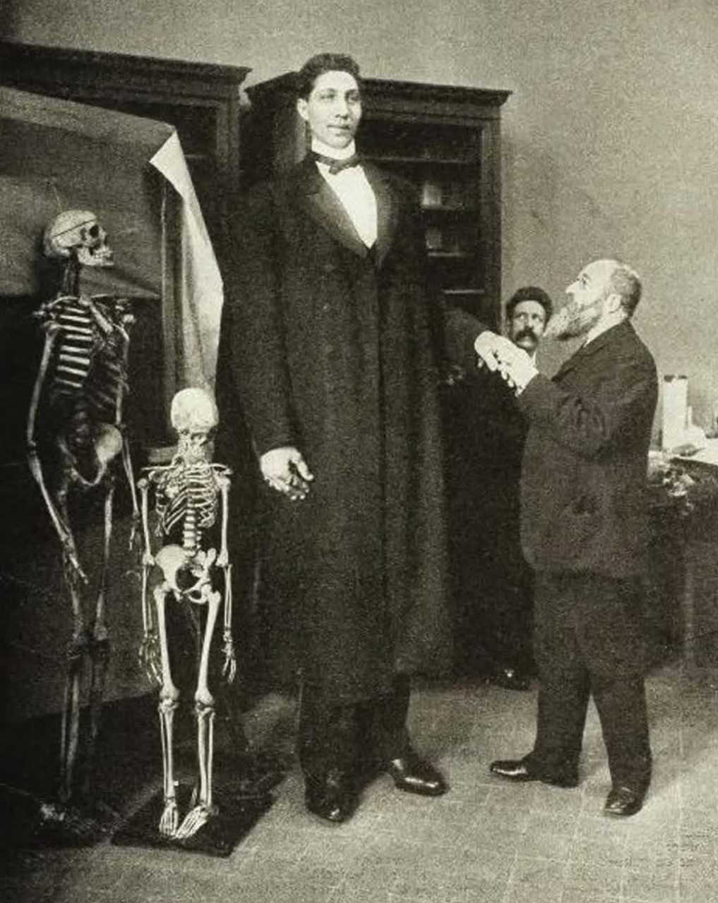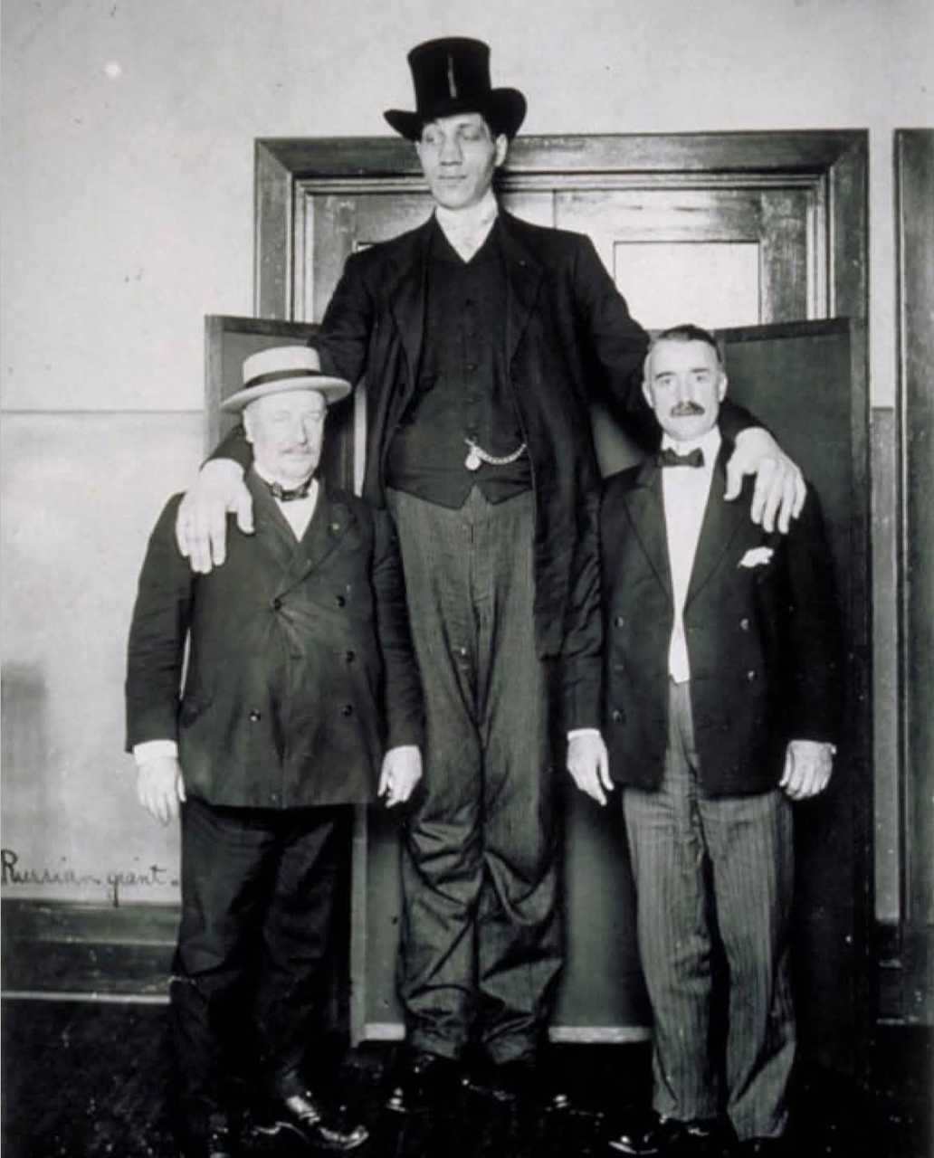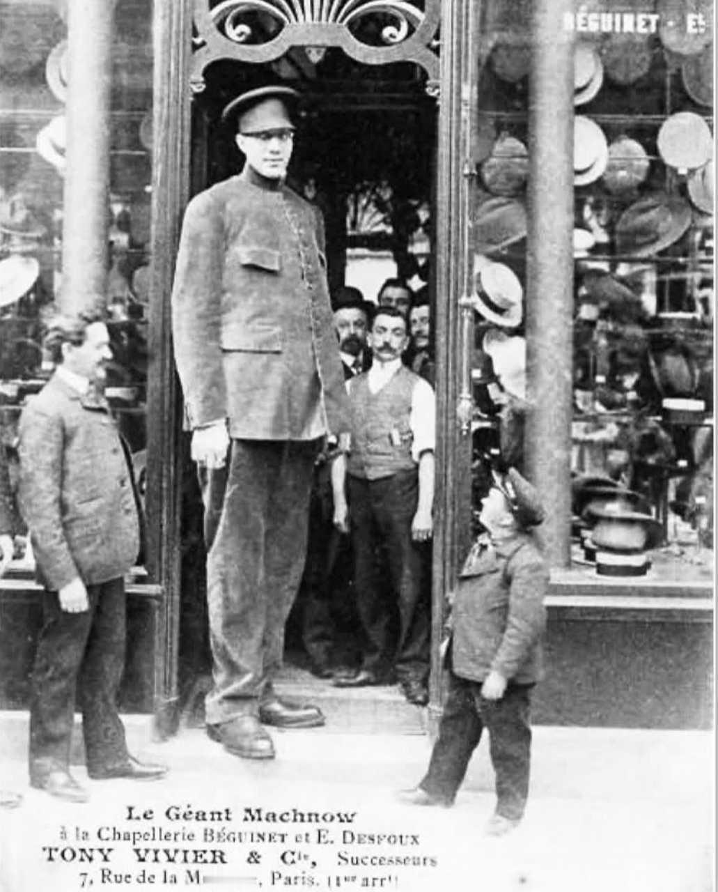 【来自投稿】Fedor Andreevich makhnov (1878-1912) 是当时俄罗斯最高的人 ,孩童时期他就比其他孩子高,20岁时他的身高就达到了2.54米,此后一直在继续长高,他和一位身高1.65米的女士结婚,生育了五个孩子,孩子们的身高和正常人一致 ,和许多过高的人一样,他的心脏和骨骼难以承受巨大的压力,34岁时去世,临终时,他的身高已经达到2.85米