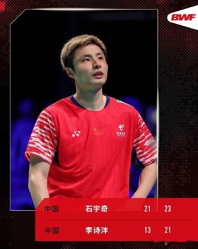 世界羽联巡回赛年终总决赛一场男单小组赛,石宇奇以21-13、23-21击败队友李诗沣,取得开门红,下一轮,两人将分别迎战周天成和奈良冈功大。