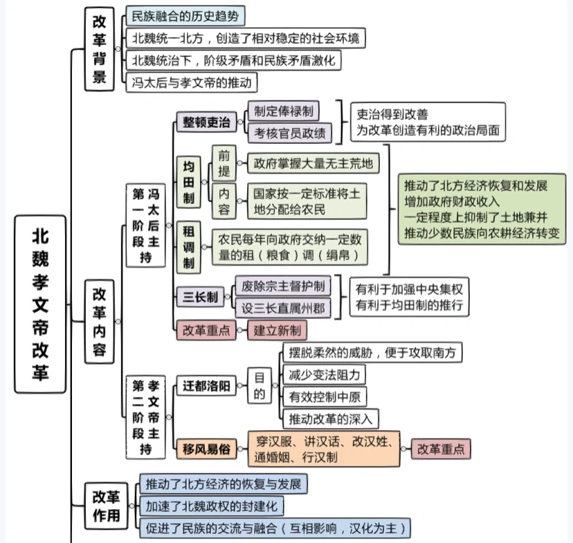 孝文帝改革是为了缓和社会矛盾,改变鲜卑族的落后状态。