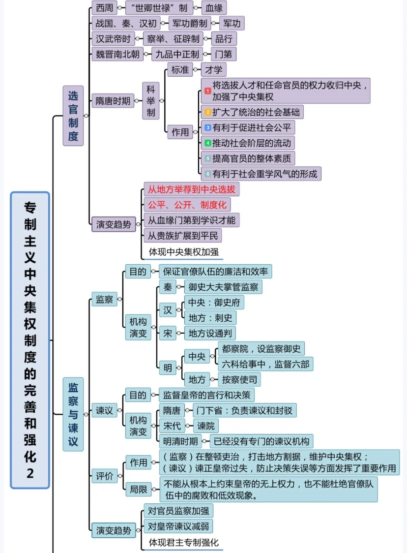 4.专制皇权的不断强化是传统官僚体制发展的产物,虽然有可能提高决策效率,但却导致了一人独尊,将国家的命运系于一人之手,最终成为社会发展的桎梏。