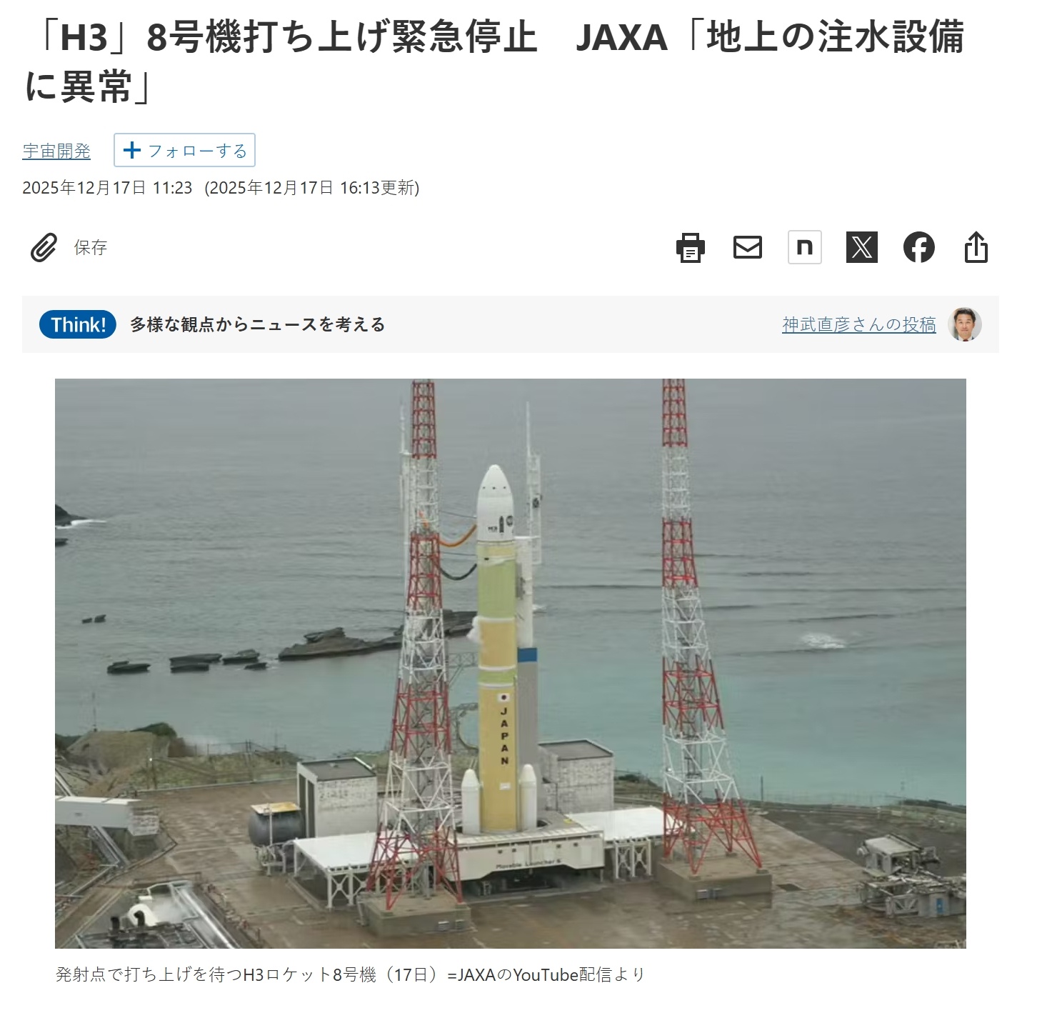 日本版GPS系统卫星发射紧急停止日媒报道,由于地面设施的冷却水注入系统故障,发射前注入的冷却水不足,导致日本宇宙航空研究开发机构(JAXA)的H-3 8号火箭在发射前自动终止发射。热点观点