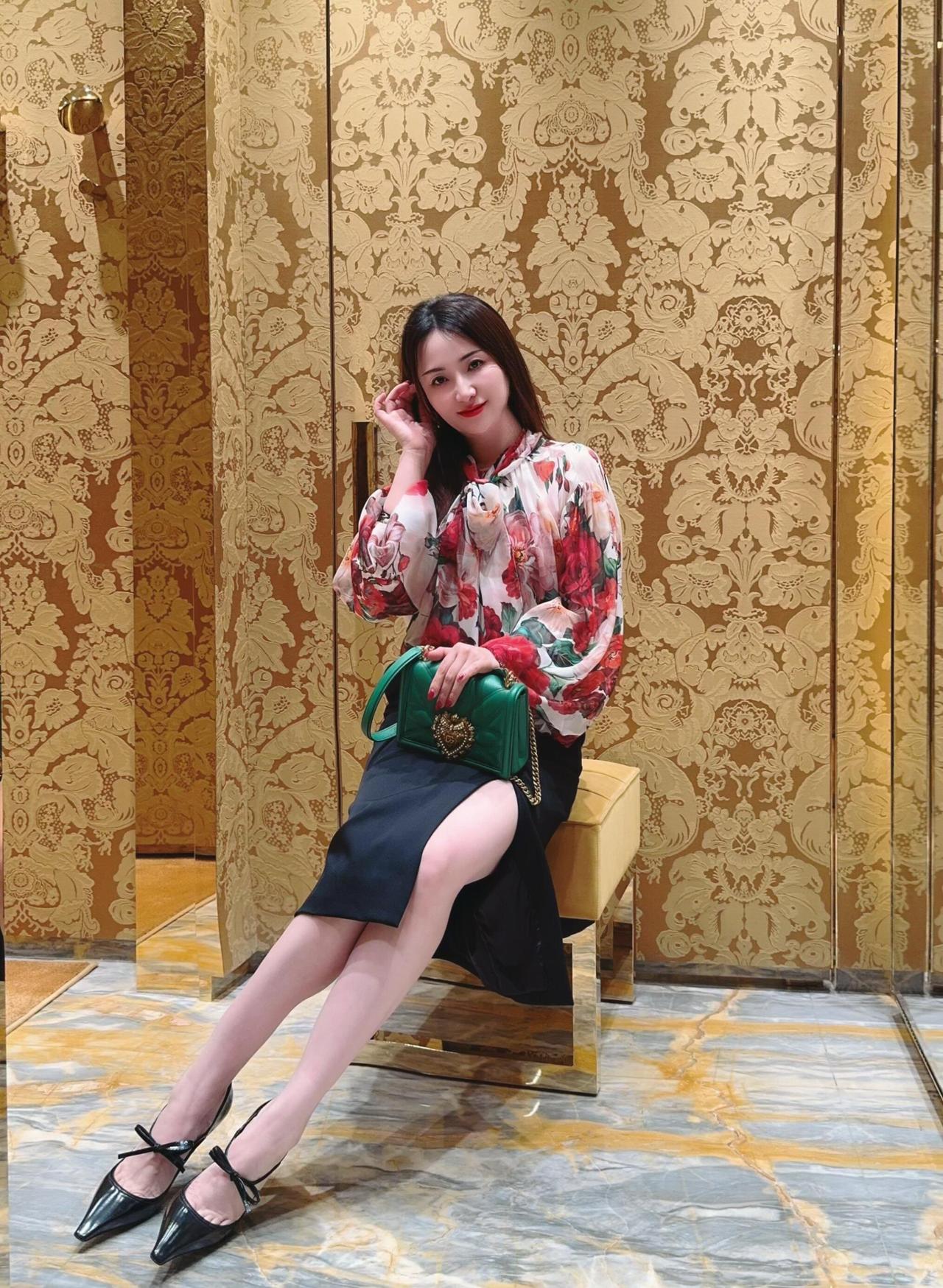 优雅复古风,黑裙配花衬衫,复古墙纸背景,时尚感满满!