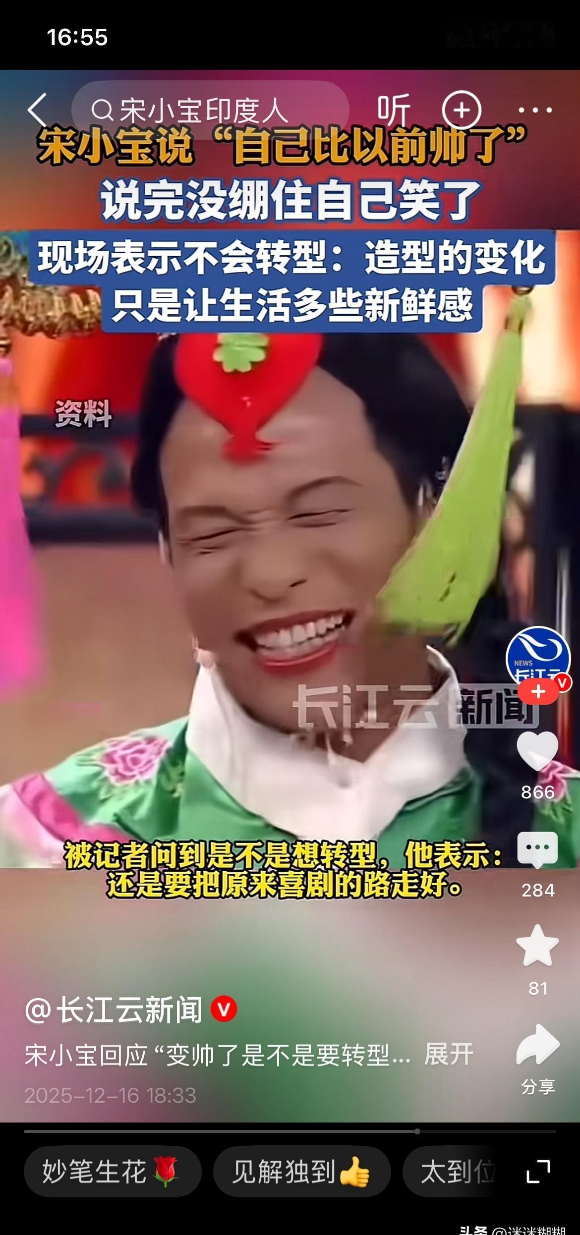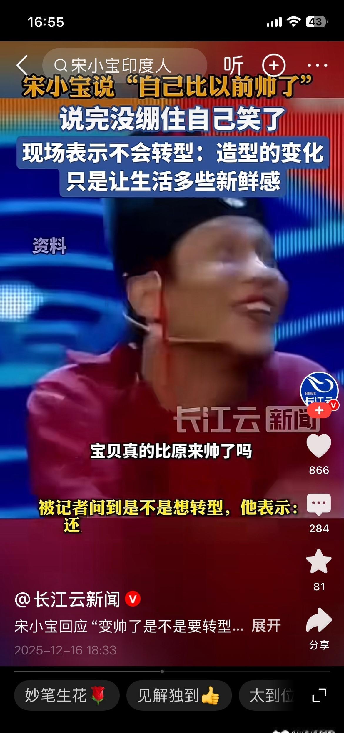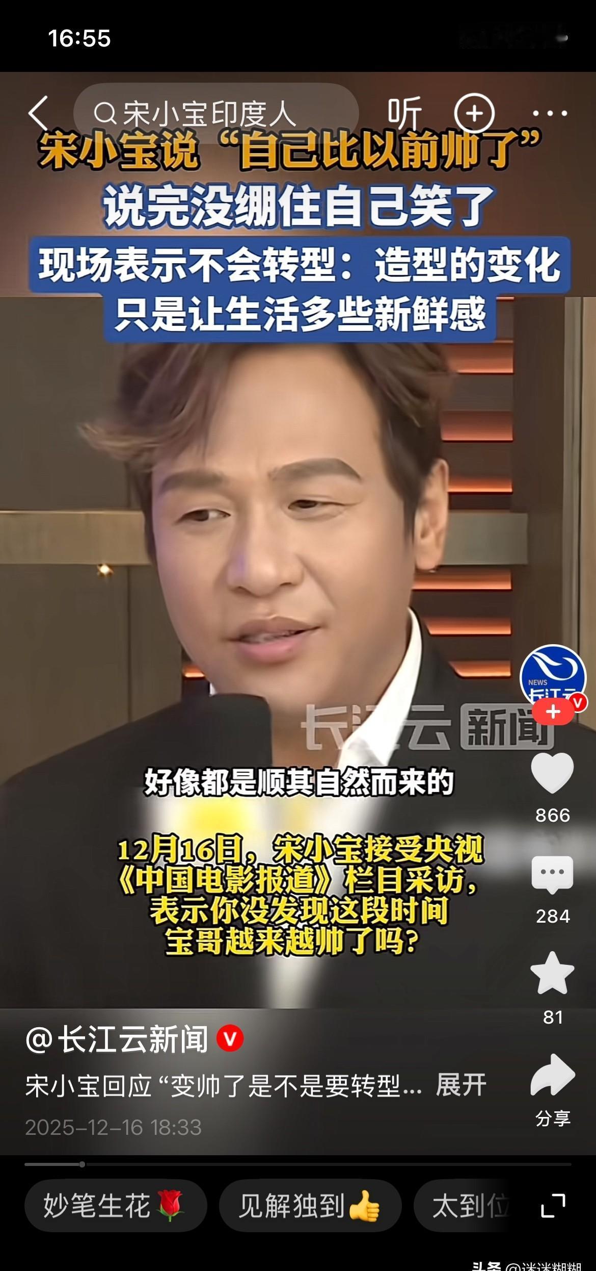 宋小宝主动聊起“变帅”。 他没开玩笑。 这位在《欢乐喜剧人》里把自己“抹黑”的喜剧之王,正在亲手撕掉标签。 你看他最近的镜头:肤色浅了,妆发变了,连笑都收着。 这不是偶然。 这是一个演员用最严肃的态度,离开他的舒适区。 他比谁都清楚,那张“黑脸”是金饭碗。 但他选择亲手把它搁下。 从综艺咖到电影片场,他钻进一个个需要“不搞笑”的角色里。 片场花絮里,他反复打磨一句正剧台词的样子,比任何小品排练都较真。 喜剧演员的最高叛逆,不是逗乐你,而是震惊你。 他不再仅仅是你快乐的调料,他正试图成为让你沉默的那道主菜。 一个敢于对过去的成功说“不”的人,值得我们重新看一遍。 他不是在逃避那张让人发笑的脸,而是在拓宽一张演员的脸。