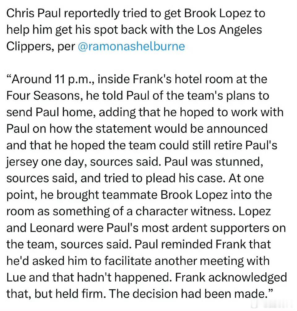 ESPN:洛佩斯和科怀-伦纳德是队内最坚定支持保罗的人。其实看看以后见面保罗会和小卡互动还是会和哈登互动答案显而易见,登蜜现在的洗白是逃不掉的。