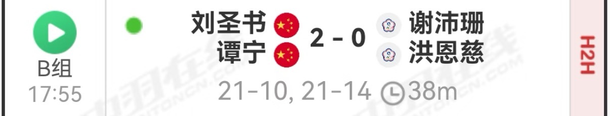 圣坛组合直落两局取得年终总决赛小组赛开门红!刘圣书/谭宁21-10、21-14 谢沛珊/洪恩慈圣坛组合总决赛迎开门红刘圣书谭宁2比0谢沛珊洪恩慈