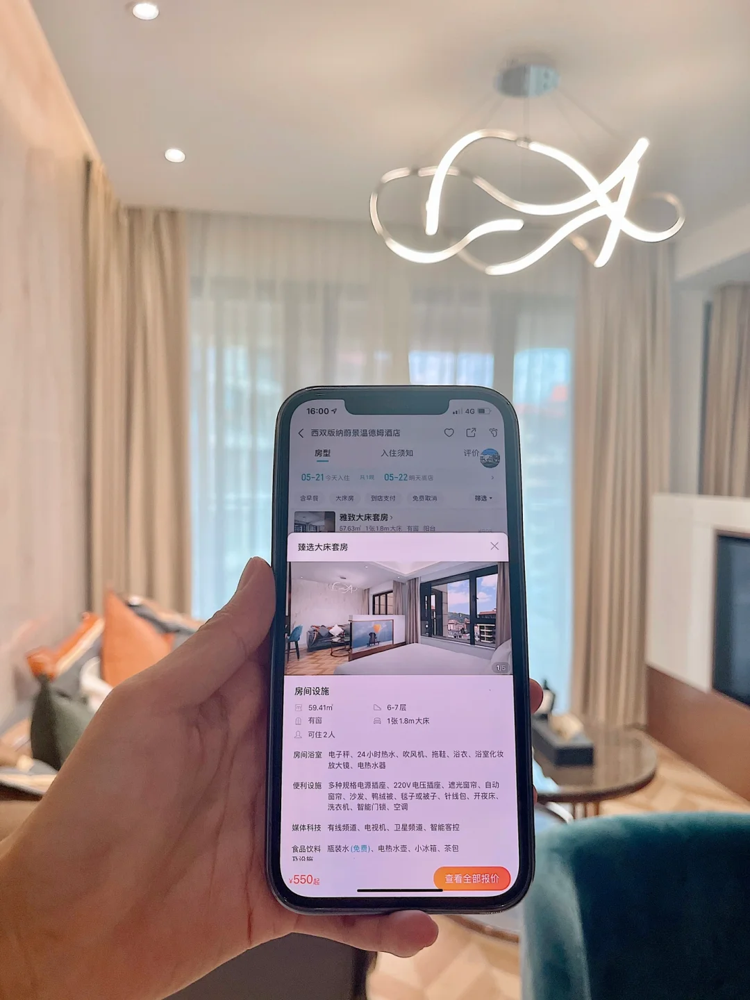😂入住的时候才发现原来这家酒店和西双版纳蔚景温德姆酒店是共同一个公共区域,只不过入住的区域不一样,但是公共设施是一样的‼️到了房间也觉得很奇怪,为什么是这个酒店🏨桌子上还放着隔壁西双版纳蔚景温德姆酒店的牌子,打开去哪儿看发现自己住的房型和温德姆酒店挂的房型对比一下相似度100%,当时是旺季挂的是550➕的价格❌当时这个价格订了觉得自己捡到便宜了💯足足省了350多~
