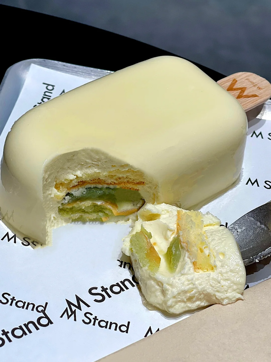 🍰海盐青提蛋糕:这个蛋糕是一个雪糕的形状,用勺子挖开,有两层渐变厚厚的青提底,吃起来还挺甜口,当你觉得生活很苦的时候,吃上这块蛋糕应该能被治愈!