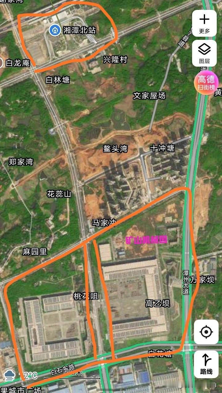 中联重科的矿山机械和履带起重都来湘潭了,高德地图更新够快。 笔者无意看高德地图,发现中联重科湘潭园区都已经标注出来了。 东园区是矿山机械的生产。 西园区是履带起重的生产。 两个园区紧紧相邻,中间是直通长沙的银盖路。这里离高铁站、地铁站只有不到两公里的距离,东园区的东大门前还是潭州大道。 未来长沙的员工来湘潭上班相当方便,半小时就能从长沙市中心抵达九华园区。