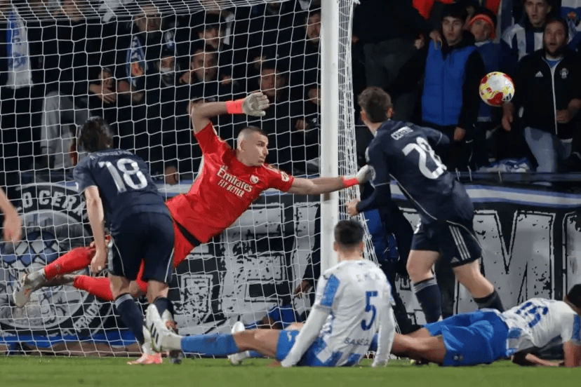 虎扑12月18日讯在本赛季皇马的国王杯首秀中,卢宁重回首发阵容。塔拉韦拉打进第二球后,在最后时刻全力压上,试图扳平比分。第93分钟,伊赛亚的射门迫使卢宁完成了一次精彩的飞身扑救,化解了原本可能出现的绝平进球,也避免了比赛被拖入加时。