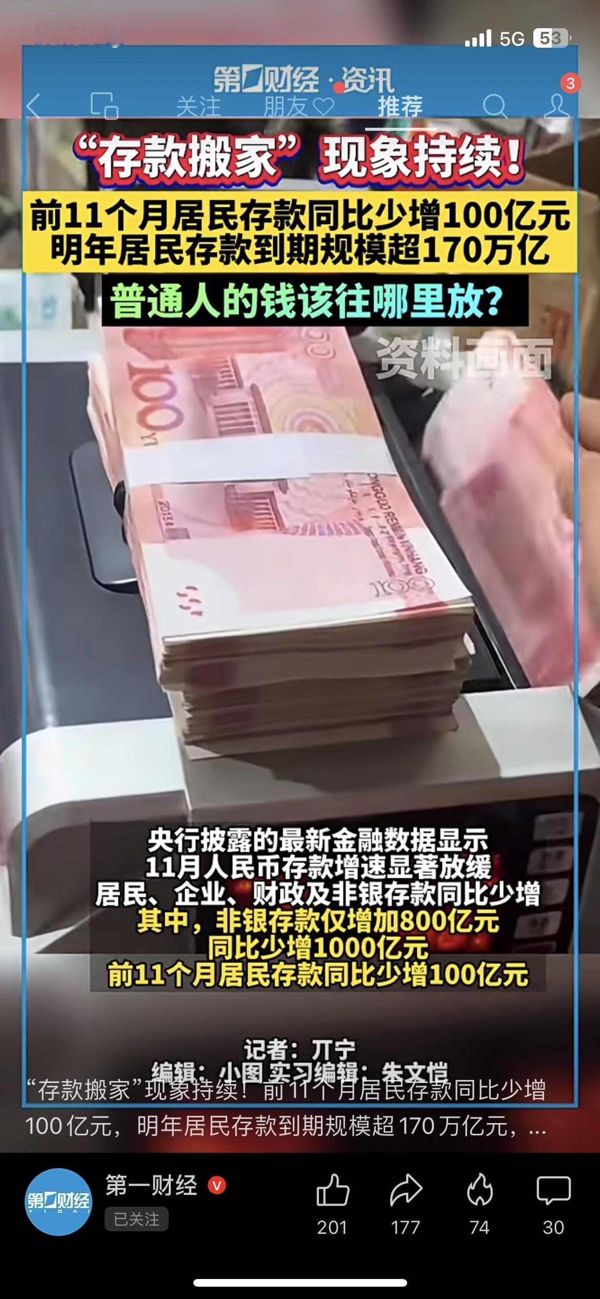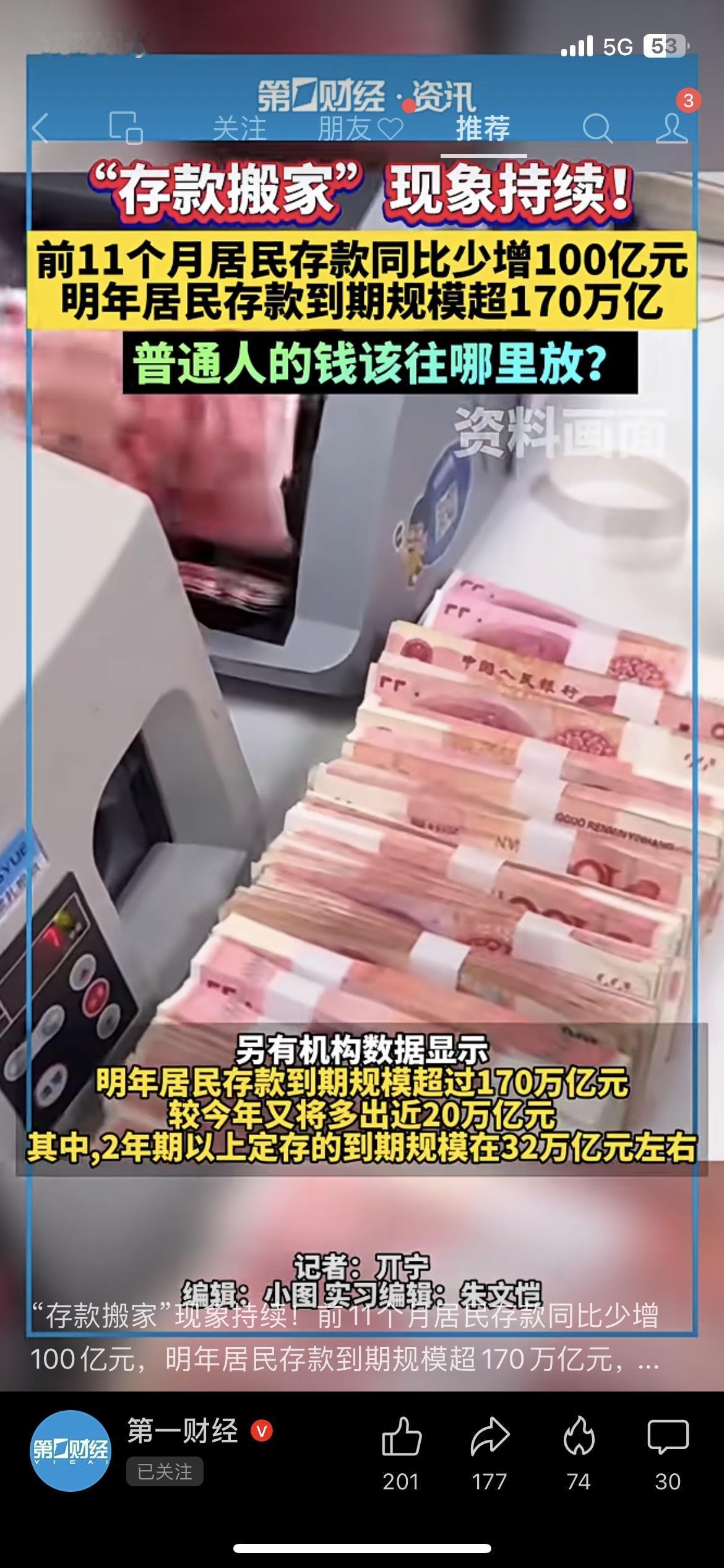 存款搬家”持续,明年居民存款到期超170万亿 前11个月居民存款同比少增了100亿元,“存款搬家”这事儿还在继续呢。 更关键的是,明年居民存款到期规模超170万亿元,比今年还多了近20万亿,其中2年期以上的定期存款到期就有32万亿左右。 银行工作人员跟我说,不少人到期后不会再直接续存,而是会找更高收益的理财方式,不过咱选的时候可得擦亮眼睛,别被高收益忽悠了。 你手里的存款到期后会怎么处理?评论区交流下!转发给家人,一起聊聊理财的门道!存款 存款定期存款 定期储蓄存款