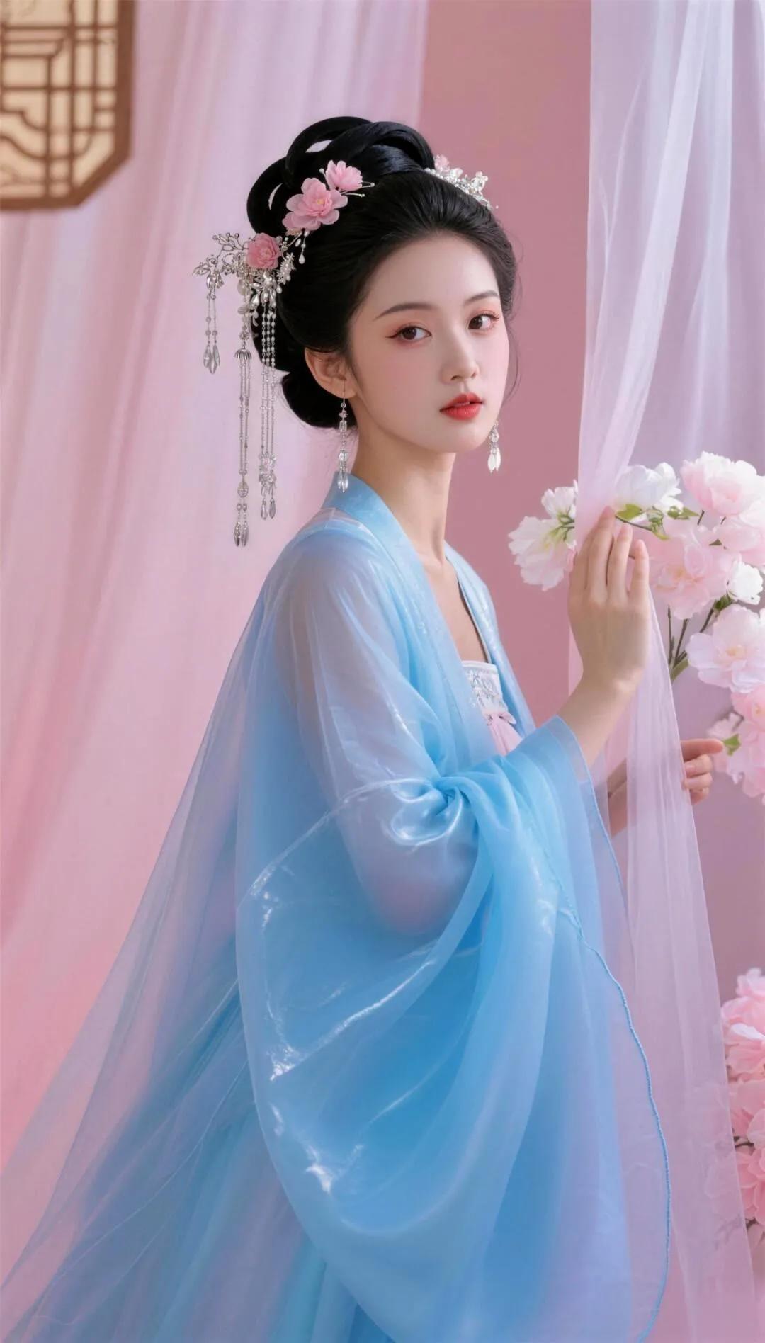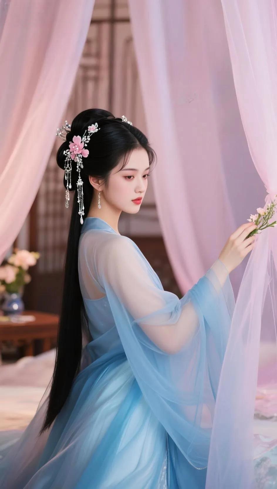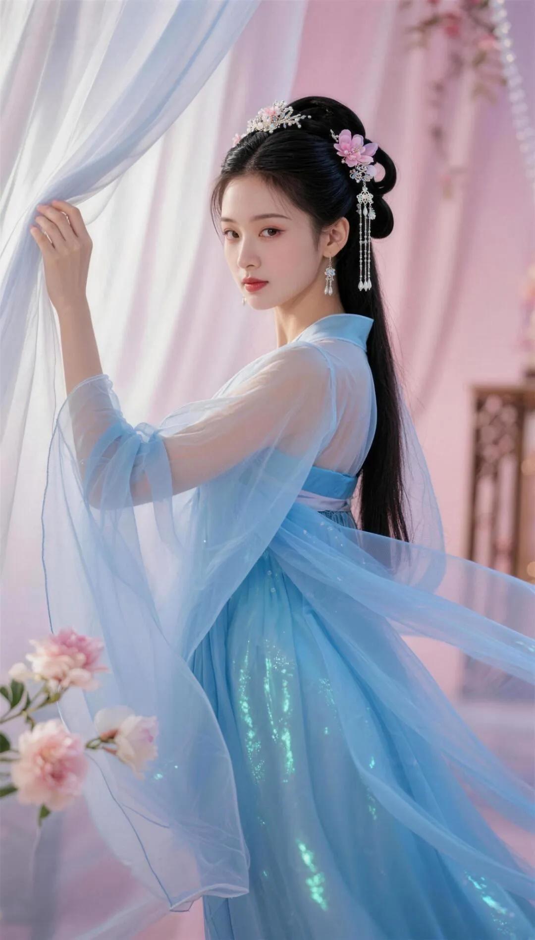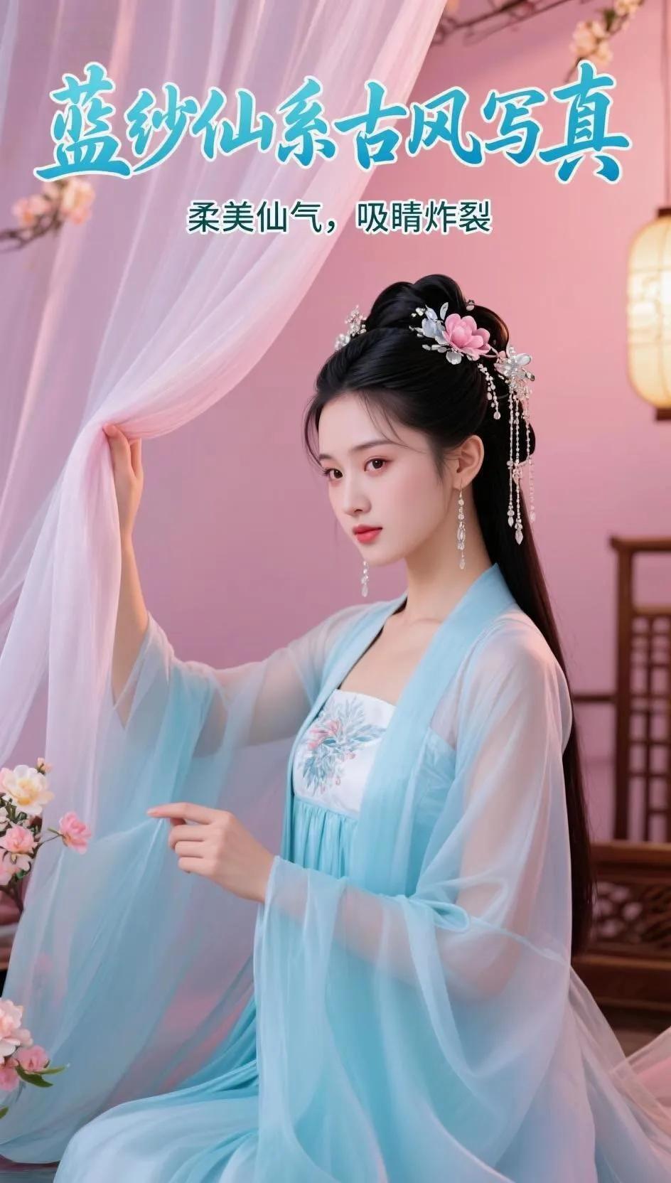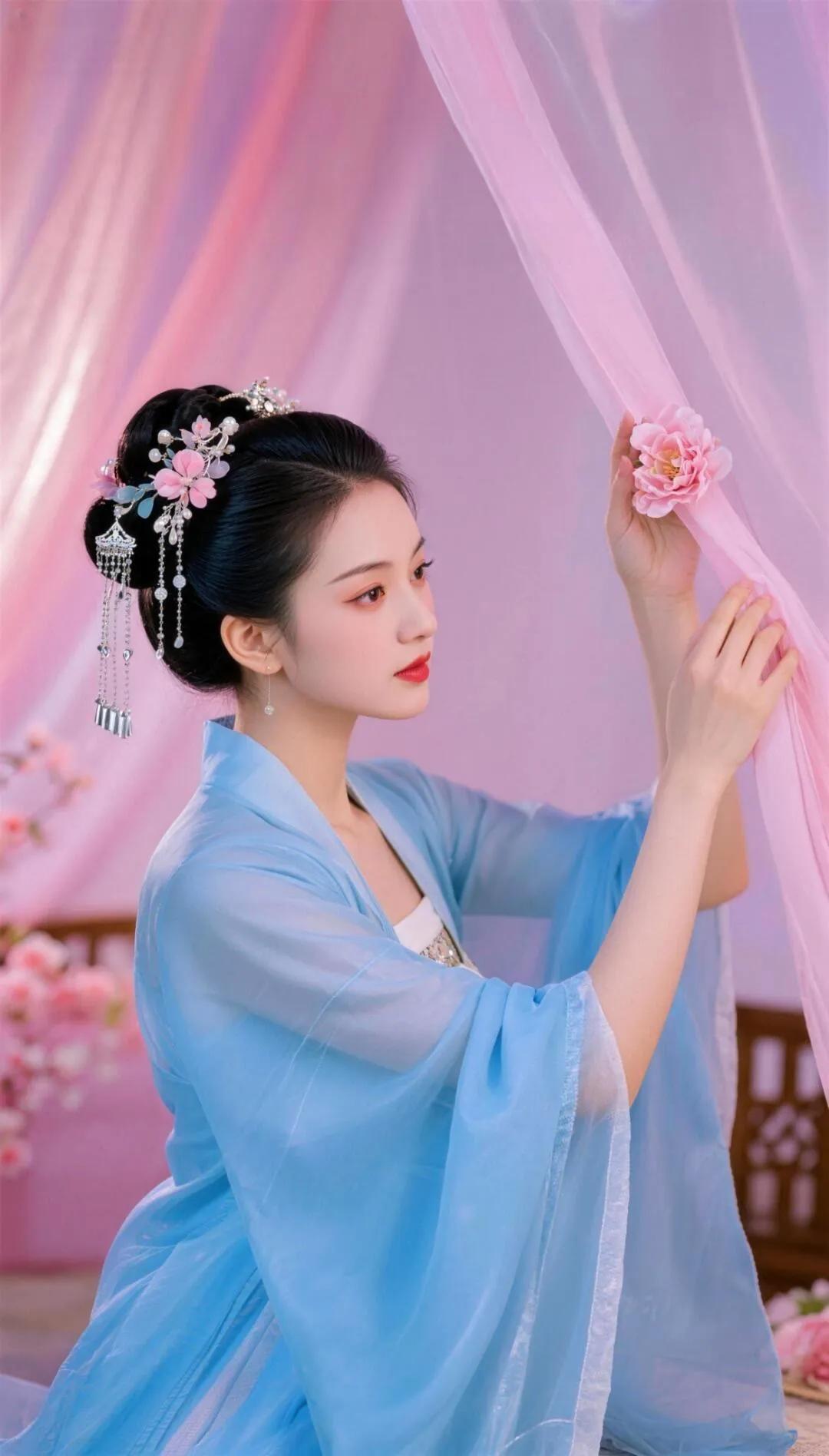 黛门青花黛木雕棂映浅妆,青花裁作旗袍裳。青丝垂落春风软,一刹江南,锁