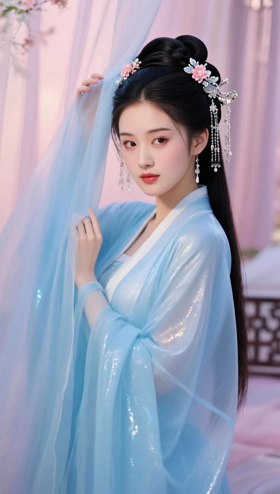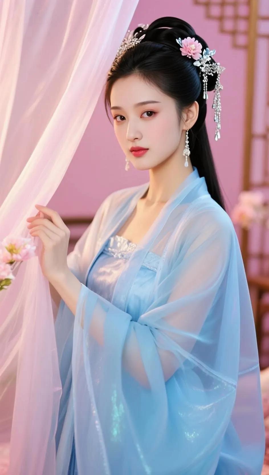 优雅旗袍少女,红唇与黑发相映成趣,古典韵味十足。