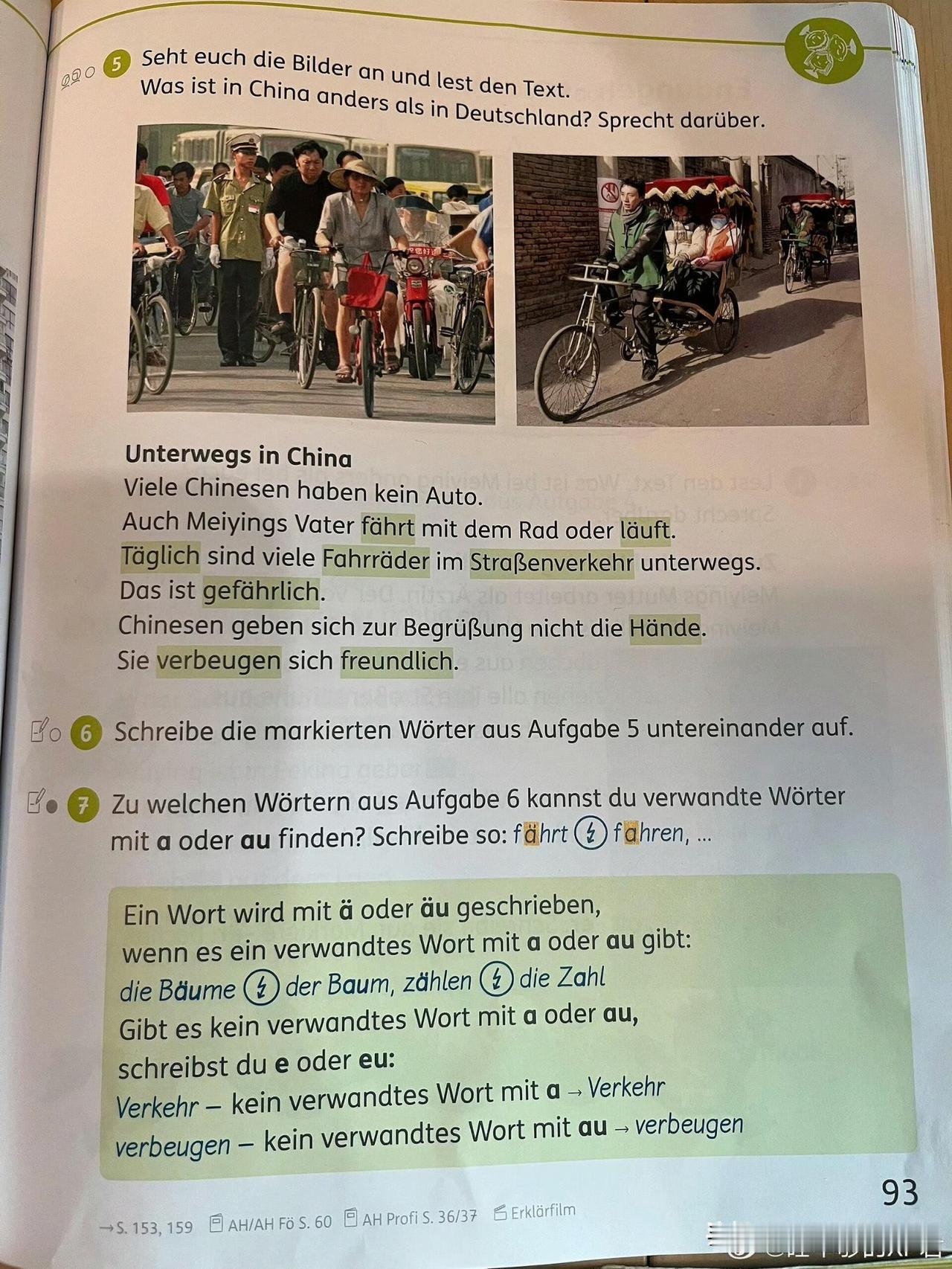 🇩🇪德国课本里的中国、上班靠自行车、耕地靠牛。 很难想象这是 2025年的教材。🤔虽然这种描述可能反映出德国课本编写者对中国存在滞后的认知和刻板印象。但实际上,2025年的中国已然是科技与传统完美融合的国度。 上班路上,共享单车、电动滑板车等绿色出行方式成为年轻人的新宠,而穿梭于城市之间的地铁、高铁网络,更是让人们的通勤高效又便捷。那些写字楼里,一个个创业者正借助先进的网络技术,开展与全球的业务往来。 再看农村,现代化的农业机械在田野里忙碌作业,无人机进行农药喷洒和作物监测,大数据、物联网等技术让耕地变得更加科学、高效。农民们坐在家中,通过手机就能了解土壤墒情、作物生长情况,精准地管理着农田。 这种课本与现实的巨大反差,也促使我们思考如何更好地向世界展示真实的中国,让更多的人看到中国的飞速发展和日新月异的变化,打破那些陈旧的认知藩篱。