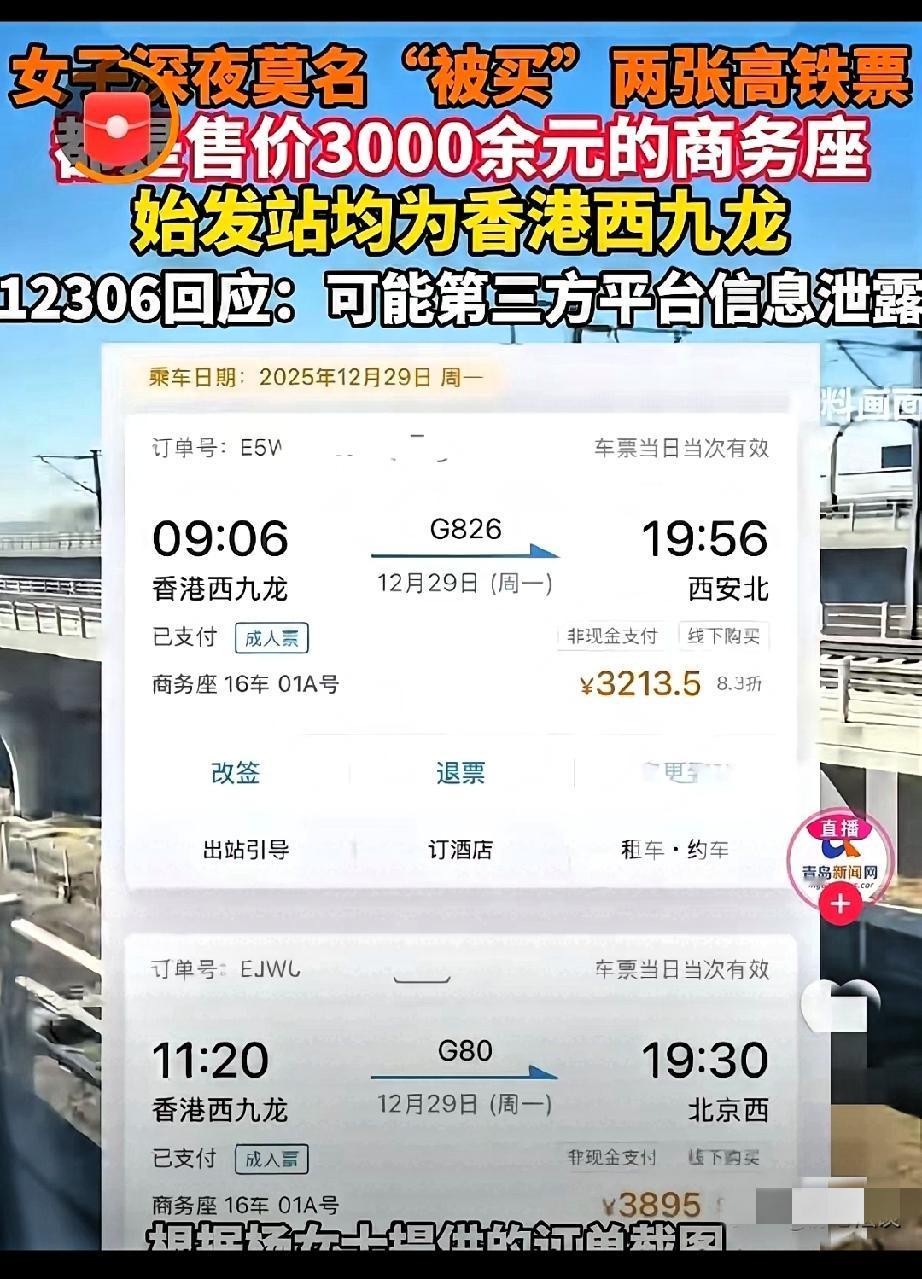 凌晨被高铁订票信息吵醒!女子一看彻底懵了:我根本没买! 石家庄的杨女士凌晨四点睡得正香,突然被手机提示音吵醒。点开一看,竟是高铁订票成功的通知,她瞬间懵圈:我啥时候买过票? 起床核对后更吓一跳,自己压根没操作! 女子赶紧联系客服咨询怎么回事,客服听完杨女士的情况,直接点明:您这情况,大概率是个人身份信息泄露了。杨女士后怕:难道身份信息被盗用了? 客服安抚,就算盗信息购票,进站也过不了核验。杨女士还是气到不行,立马退票改密码,忍不住吐槽:网购、刷卡到处留信息,谁知道还有多少隐患! 你有没有收到过莫名其妙的消费、订票通知?评论区聊聊!