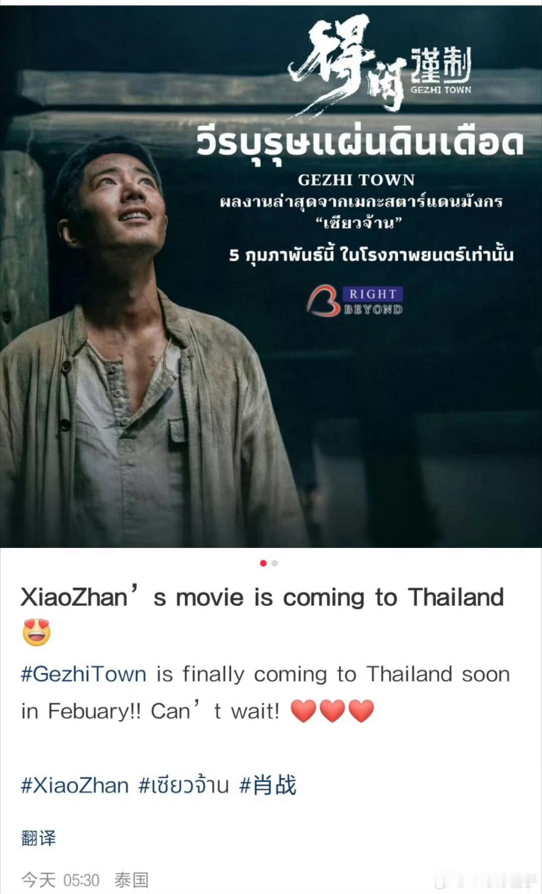 肖战《得闲谨制》将在明年二月份在泰国上映