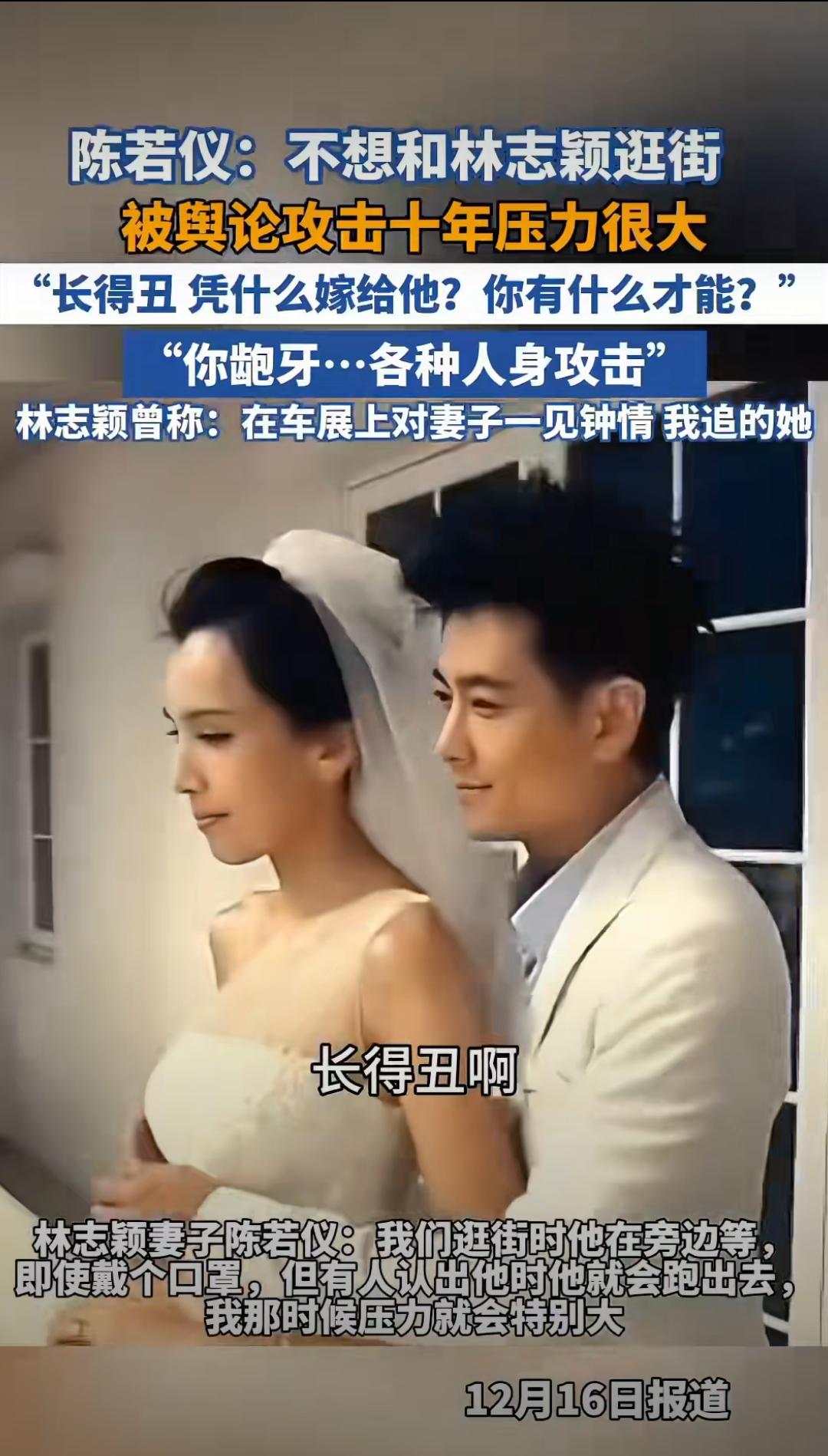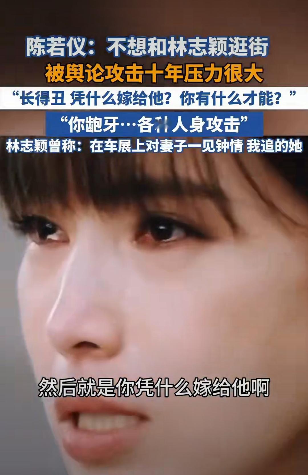 嫁林志颖被骂十年!她到底冤不冤? 谁懂啊!当年林志颖官宣娶陈若仪,多少人追着骂她“配不上”。说她长得丑、没本事,逛街被路人指指点点,这罪她硬生生扛了十年! 没人记得,是林志颖在车展对她一见钟情,主动追的她。爱情哪有什么配不配,不过是外人的偏见罢了! 现在看她云淡风轻讲过往,真的太心疼了!