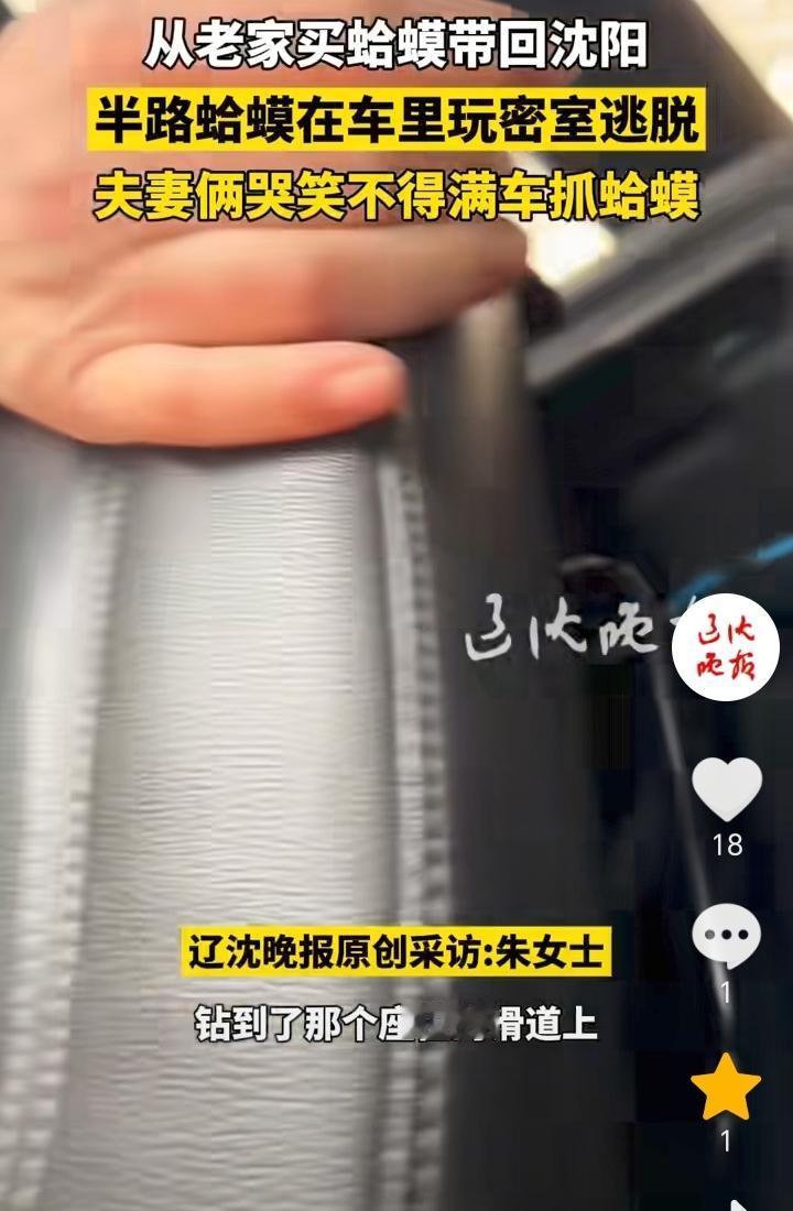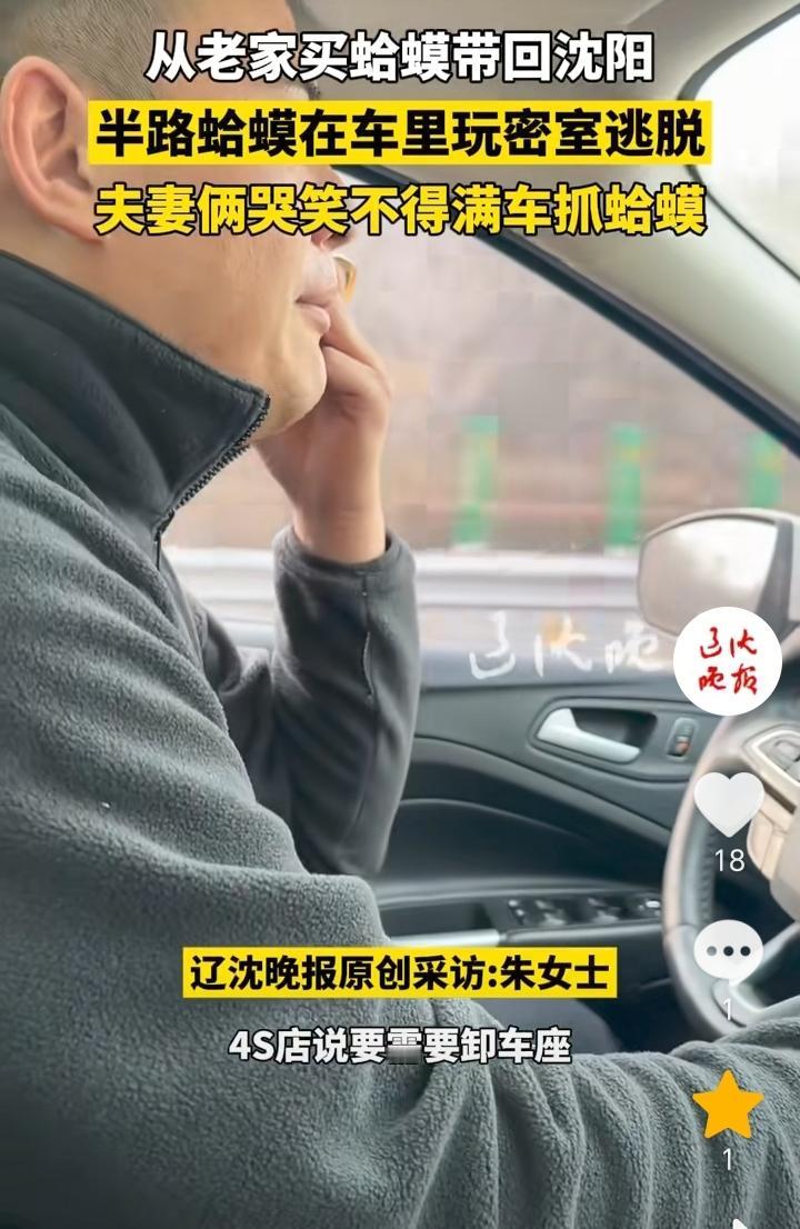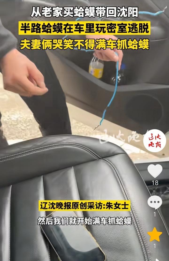 嘴馋惹的祸!辽宁沈阳,夫妻俩从老家买了蛤蟆放在车里带回沈阳,没想到蛤蟆在车上自己跑出来了,夫妻俩满车抓蛤蟆,结果发现蛤蟆钻进了座位的滑道上弄不出来,后来只能求助4S店,最终4S店也是卸掉车座才把蛤蟆弄了出来。 车空间大蛤蟆那么小,袋子不系紧很容易跑出来,找起来确实也是比较麻烦,最终还是到4S店卸车座才成功把蛤蟆弄出来,也是够折腾的,不过归根到底也是嘴馋惹的祸。 车上带活物一定要放好,然后袋子系紧,万一跑出来也是比较麻烦的。