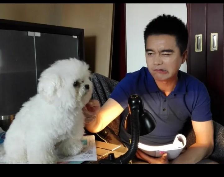 许亚军这日子过得不错呀,有小娇妻陪跳舞,空余时间逗逗狗,家还有帅哥儿子让他一看就开心。