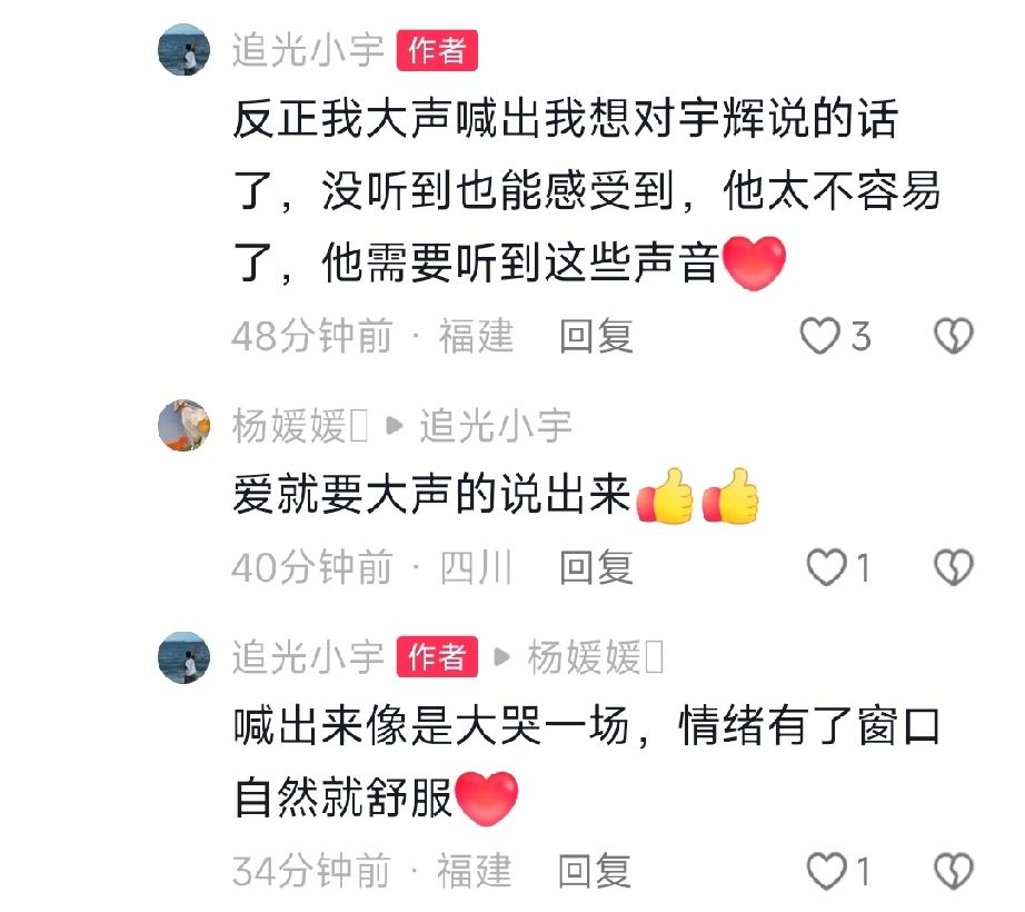 只有真正爱你的人才会怕你太辛苦!昨晚宇辉阅山河福建行直播结束后,出现了令人感动的一幕! 昨晚直播结束后,宇辉照例走出去和现场的粉丝朋友们合影,这时有一位粉丝朋友大声的喊出了:“宇辉,以前的路很难走,现在有这么多人守护你,走慢一点,别太辛苦!” 隔着屏幕都感动的泪目了,他喊出了我们所有211同学的心声。也有朋友说爱就要大声的说出来。而那位粉丝朋友说:“反正我是大声喊出了想对宇辉说的话,就算没听到也能感受到,他太不容易了, 他需要听到这些声音。喊出以后就像是大哭一场,情绪有了窗口,自然就舒畅了。” 突然发现的第四种感情似乎比任何感情都还要坚固。宇辉说所有的网友是他的伯乐。而我想说的是,宇辉是我们生活里的光。他给我带来了最大的改变就是,网上购物时节约了我大把大把的时间;尘封已久的书架开始启用;也改变了我的一些消费观念和人生态度;还有就是总是想着抽出时间来看他直播。 感情都是相互的,如果每个人都怀着一颗感恩的心,你对我好,我对你更好,每个人都抱着这种想法,那么人与人之间的感情,将坚不可摧。董宇辉和他的粉丝朋友们之间的第四种感情便是如此,是一种双向奔赴的感情。 董宇辉 与辉同行