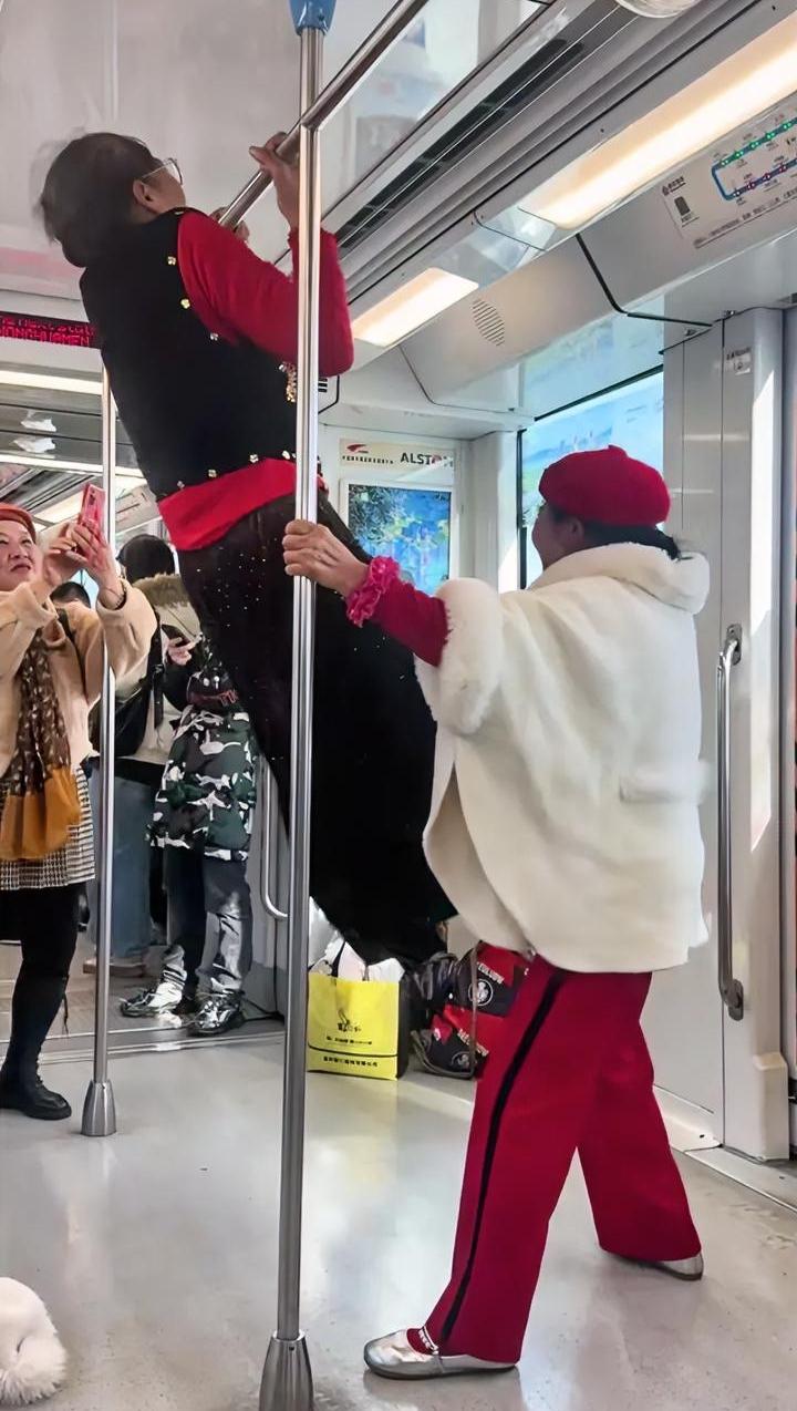 真是活到老、作到老,幸亏地铁在地下,要不然这位大妈都能“上天”。 近期一地铁上,三位大妈打扮的光鲜亮丽,其中一位大妈童心未泯,扒住栏杆做起了引体向上,挂在了半空。 剩下的两位大妈一个拍照,另一个推着“上天”的大妈打秋千,难度系数五颗星。 这位打秋千的大妈确实有活力,精神头比年轻人都足,只不过地铁车厢也不是打秋千的地方呀?万一栏杆坏掉了,人摔下来了,最后该谁赔谁? 出门在外要注意素质,更要注意安全,这么大的年龄还做危险动作,幸亏最后没什么意外,要不然真说不清楚。
