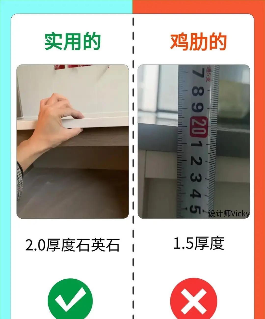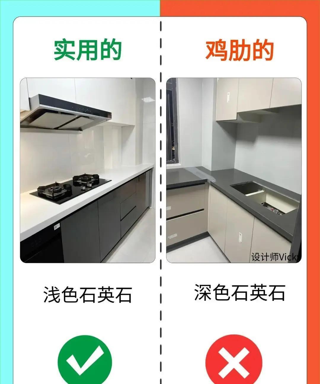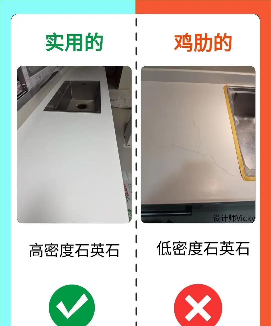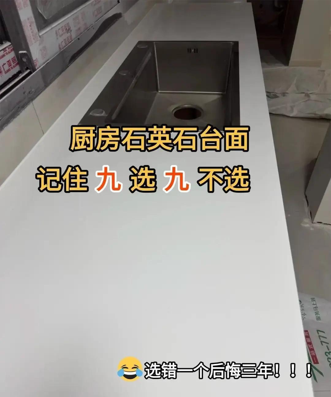 很多人第一块石英石板子,选错就废了。 你以为花大价钱买的“纯石英石”,可能是碳酸钙加树脂。钥匙划完没痕迹?这只是基础。2024年新骗局是“石英砂混合板”,拿白醋滴上去不起泡,才算过关。 买的时候,死磕两个数字:石英含量≥93%,密度>2.4g/cm³。直接问商家要SGS报告,别信口头承诺。厚度选2.0cm起步,预算够就上3.0cm一体厚板,断裂风险直线下降82%。 颜色别纠结。中科院色彩报告证实,浅灰莫兰迪系反射率比深色高40%,长时间备菜不累眼。还有,检查边缘是不是45°斜切带纳米镀膜,圆角处理能让小孩磕碰受伤率降76%。 台面拼接处别做传统挡水条。现在有一体成型的微弧工艺,贵15%,但从此告别霉变发黑的玻璃胶。灶台区域,务必看热膨胀系数,低于4.5×10⁻⁶/℃才能抗住骤冷骤热。 小心每延米600元以下的“特价款”。2024年行业底价监测显示,这价位大概率是钙粉板,用两年就渗色变形。进口品牌也一样,必须让商家出示原产地证明,别为国内代工付进口价。 最后记住三个新功能:抗UV(避免西晒台面变色)、抗菌认证、无痕拼接技术。这不是消费升级,这是2024年合格石英石的入场券。 选对石英石,不仅是选对一块台面,更是选对未来十年,每个清晨的愉悦心情。